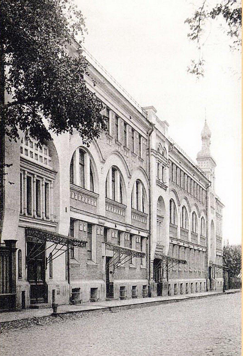 Вначале ХХ века начали строить специальные здания для попечительств. В1905 году было построено здание Пятницкого попечительства о бедных. Его автор – архитектор Карл Карлович Гиппиус (1864 – 1941), много строивший для семьи купцов и промышленников Бахрушиных. Для здания попечительства К. К. Гиппиус избрал неорусский стиль. Сложность такого выбора заключалась в том, что в древней Руси не было зданий подобного назначения, и архитектор вынужден был придумать необходимую форму. Основным художественным приёмом стало размещение на фасаде второго этажа аркады, напоминающей древние гостиные дворы. Для устранения однообразия аркада в двух местах прерывается вертикальными вставками. Над северной вставкой помещена звонница домовой церкви попечительства, освящённой в 1906 году во имя царицы Елены, святой, соимённой матери председателя попечительства и главного благотворителя организации. Председателем Пятницкого попечительства стал Владимир Александрович Бахрушин (1853 – 1910).