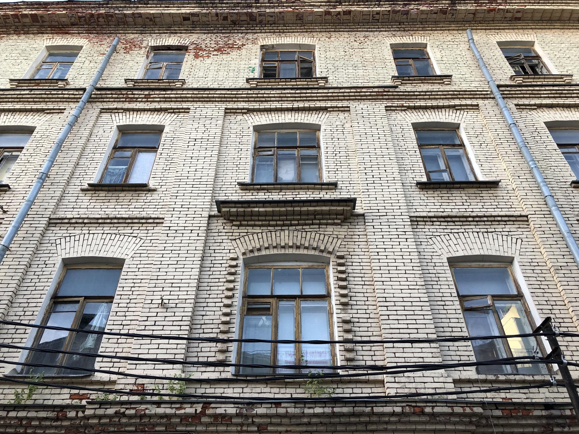На верхнем этаже располагается квартира директора училища. А всего в доме 13 квартир, расположенных вокруг четырехмаршевой лестницы, освещенной световым фонарем. Четыре на первом этаже, по три – на остальных. Комнаты объединены в анфиладу, кухня и подсобные помещения примыкают к черной лестнице, окна кухонь выходят на лестничную площадку.