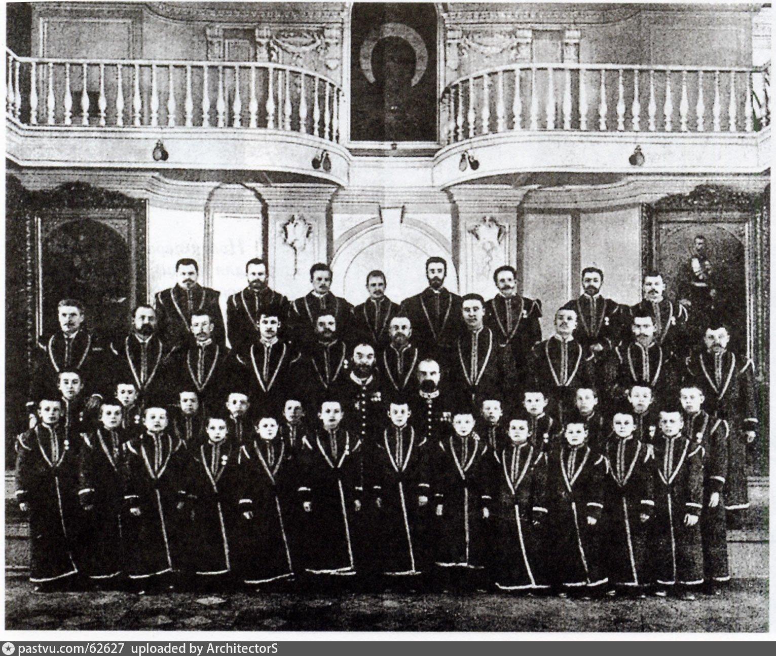 Синодальный хор был создан в Москве в начале XVIII в. Он пел в кремлевских соборах во время служб. Сначала в его состав входили только певцы-мужчины, но с 1767 г. в хор были официально введены детские голоса. А если дети, то их надо учить, и была образована школа для подготовки хористов кремлевских соборов. Сначала это было 4-классное заведение по типу епархиальных училищ, но с 1886 г. началось серьезное реформирование училища, чтобы оно могло давать мальчикам, поступавшим в хор в 7-8-летнем возрасте, образование, близкое гимназическому, а по музыкальным предметам ‒ к консерваторскому курсу. Особое внимание уделялось изучению церковного пения и регентского дела.