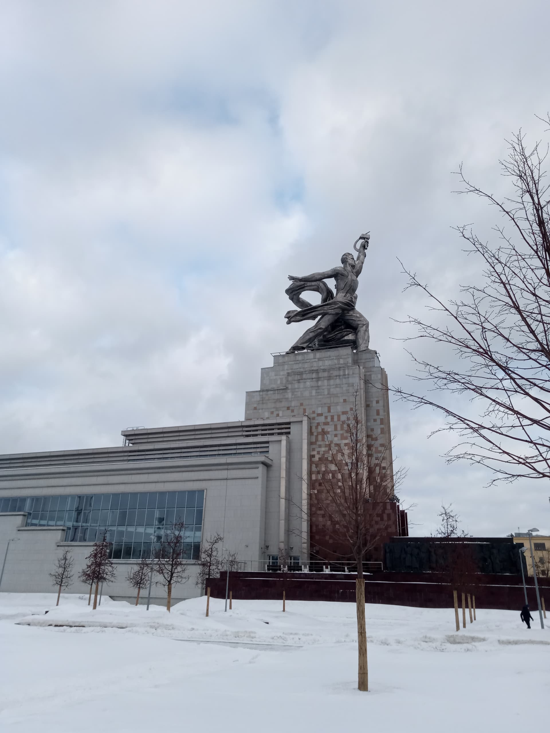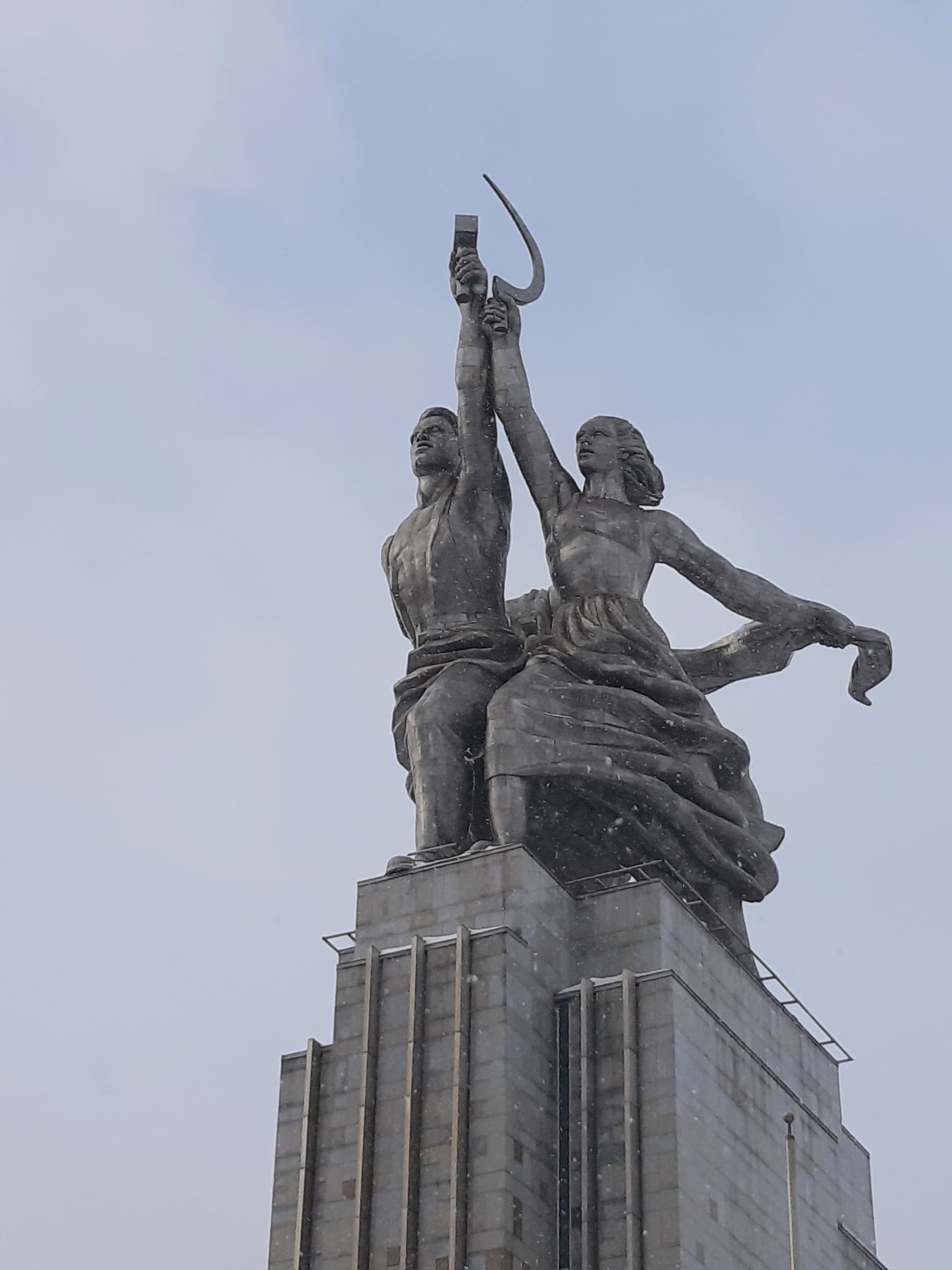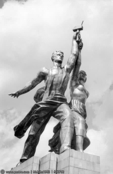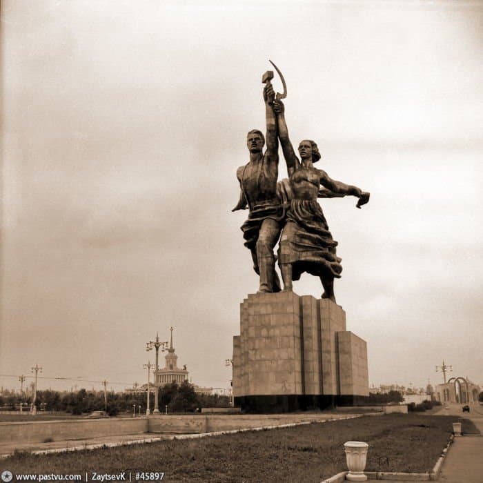 Скульптура «Рабочий и колхозница» была создана Верой Мухиной для павильона СССР на Международной выставке в Париже 1937 года. Этот монумент стал центральным элементом советского павильона, который проектировал архитектор Борис Иофан. Памятник представляет из себя скульптурную группу из двух фигур, устремленных вверх и поднимающих высоко над головами серп и молот. Этот образ стал олицетворением стремления страны к развитию и прогрессу.