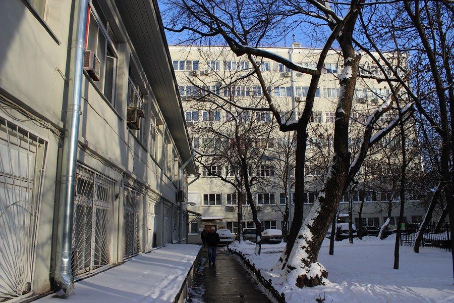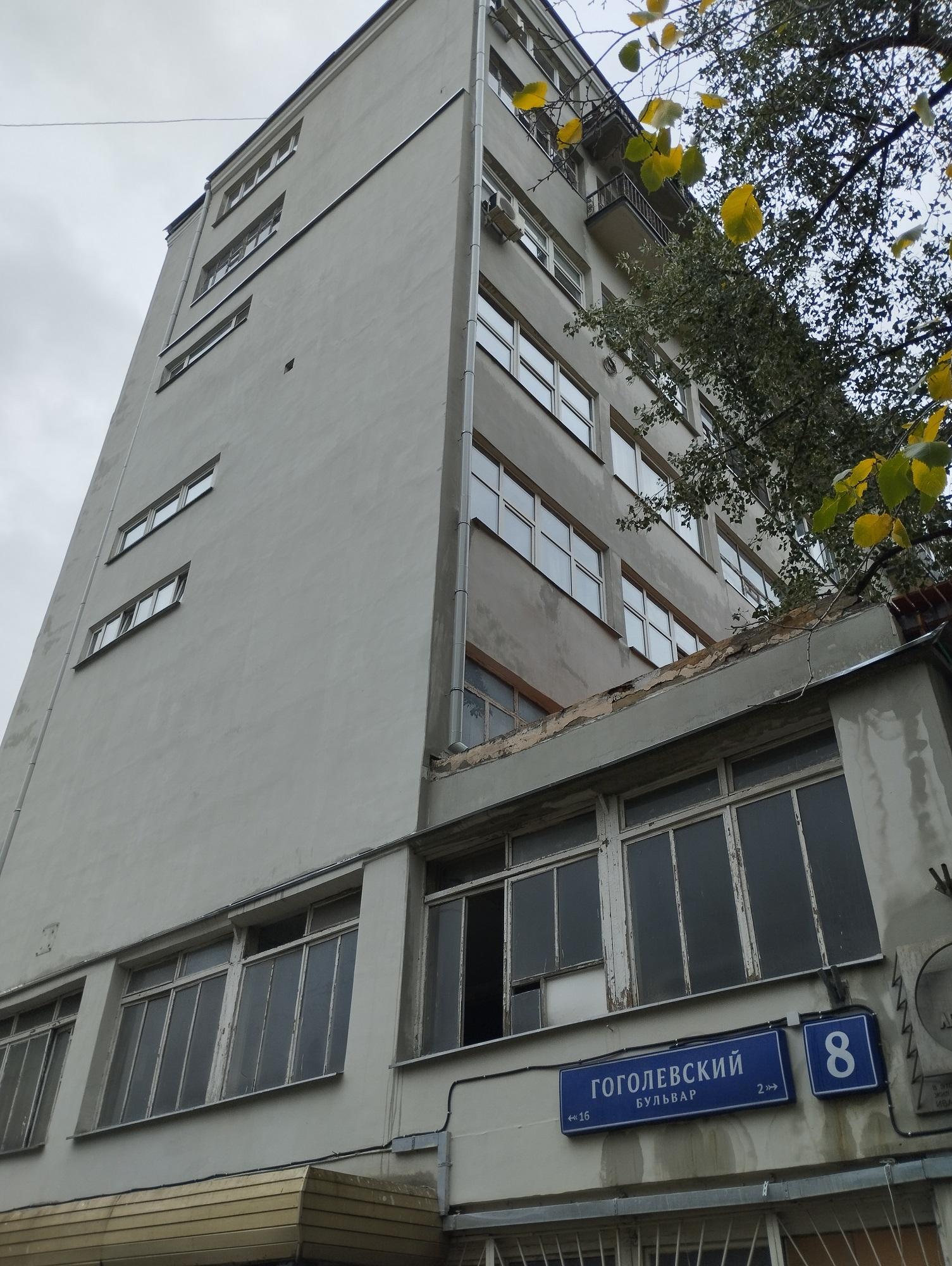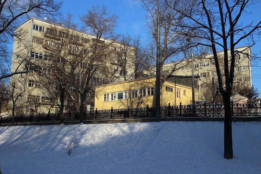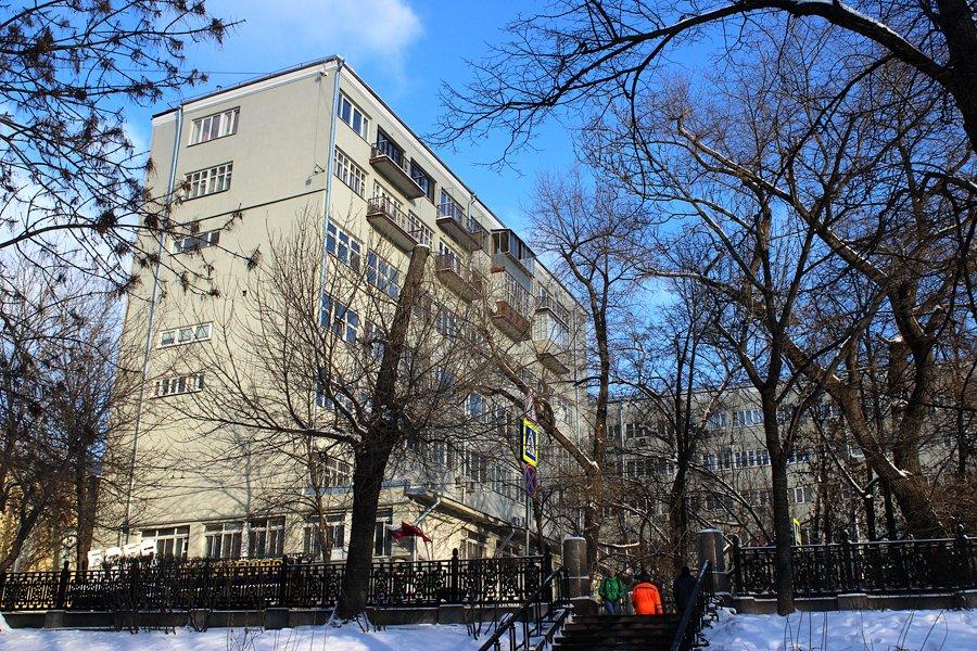Жилой комплекс жилищного кооператива на Гоголевском бульваре выстроен по проекту группы архитекторов-сотрудников Стройкома РСФСР М. Барща, В. Владимирова, И. Милиниса, А. Пастернака, Л. Славиной под руководством М.Я. Гинзбурга в 1928–1931 годах как экспериментальное жилище с элементами бытового обслуживания.
