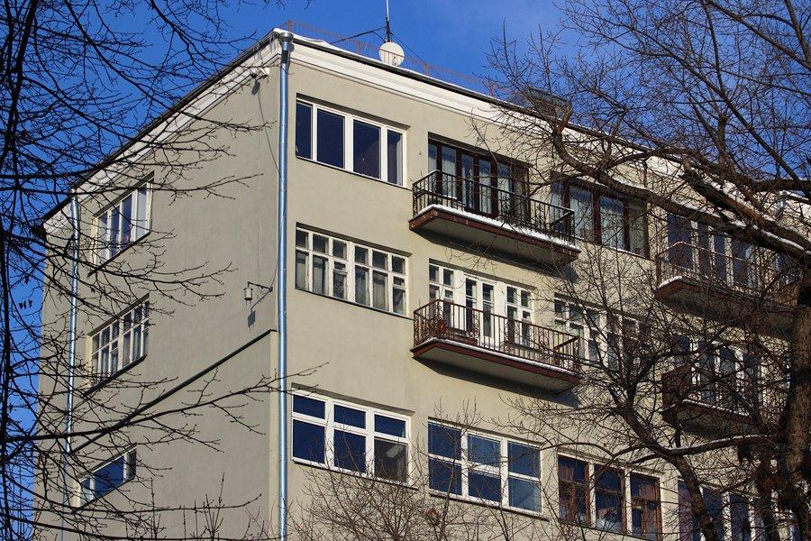Также квартиры тут получили и другие архитекторы — Иван Леонидов, Андрей Буров, Соломон Лисагор, образовав своеобразную «коммуну» архитекторов на одном этаже. Исключением стал А. Пастернак, поселившийся в соседнем корпусе, где были однотажные квартиры типа A. У него в 1932 году жил брат Борис, знаменитый поэт. Ради постройки этого дома была снесена церковь Ржевской Божьей Матери, стоявшей на этом месте. Церковный подклет частично вошел в состав подвала дома.