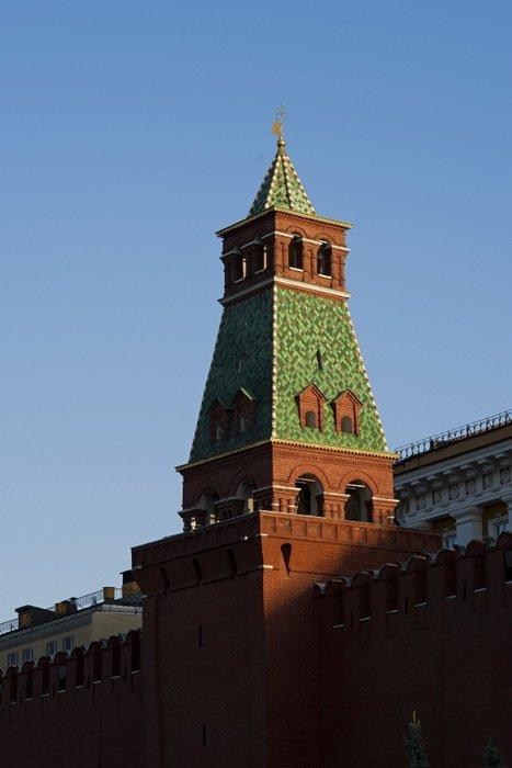 Ее монолитный стройный четверик, завершенный машикулями и парапетом, в 1680-х годах был увенчан четырехгранным шатром, который заканчивается сквозным четвериком с шатриком над ним и флюгером. С постройкой на территории Кремля в 1787 году М. Казаковым Сената, от которого она получила свое название, и возведением Мавзолея В.И. Ленина башня стала одним из существенных компонентов ансамбля Красной площади.