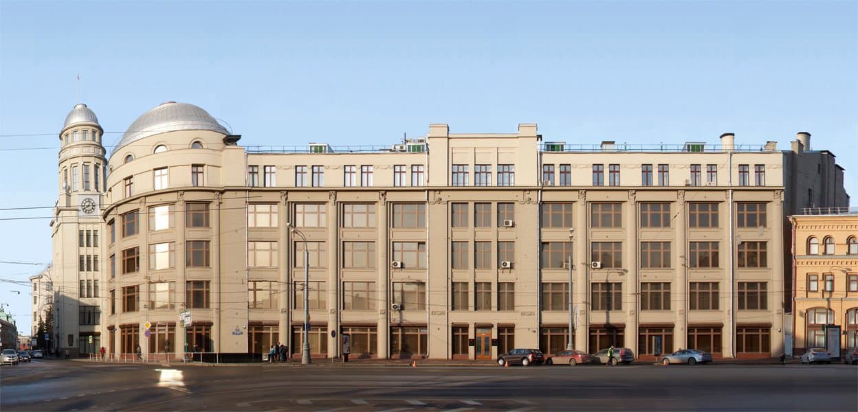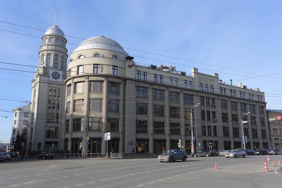 Конкурс на постройку проводило Московское Археологическое Общество, пекущееся о сохранении Китайгородской стены и архитектурного облика Москвы. Участвовало 22 проекта. Победил же проект под девизом «Центр» — И. Рерберга, М. Перетятковича, В. Олтаржевского и И. Голосова. Архитекторы удачно использовали весь полученный участок. Рациональное размещение строений, представляющих комплекс из нескольких корпусов, объединяющая их сложная структура переходов и внутренних дворов прекрасно сочетались с новой архитектурной эстетикой.