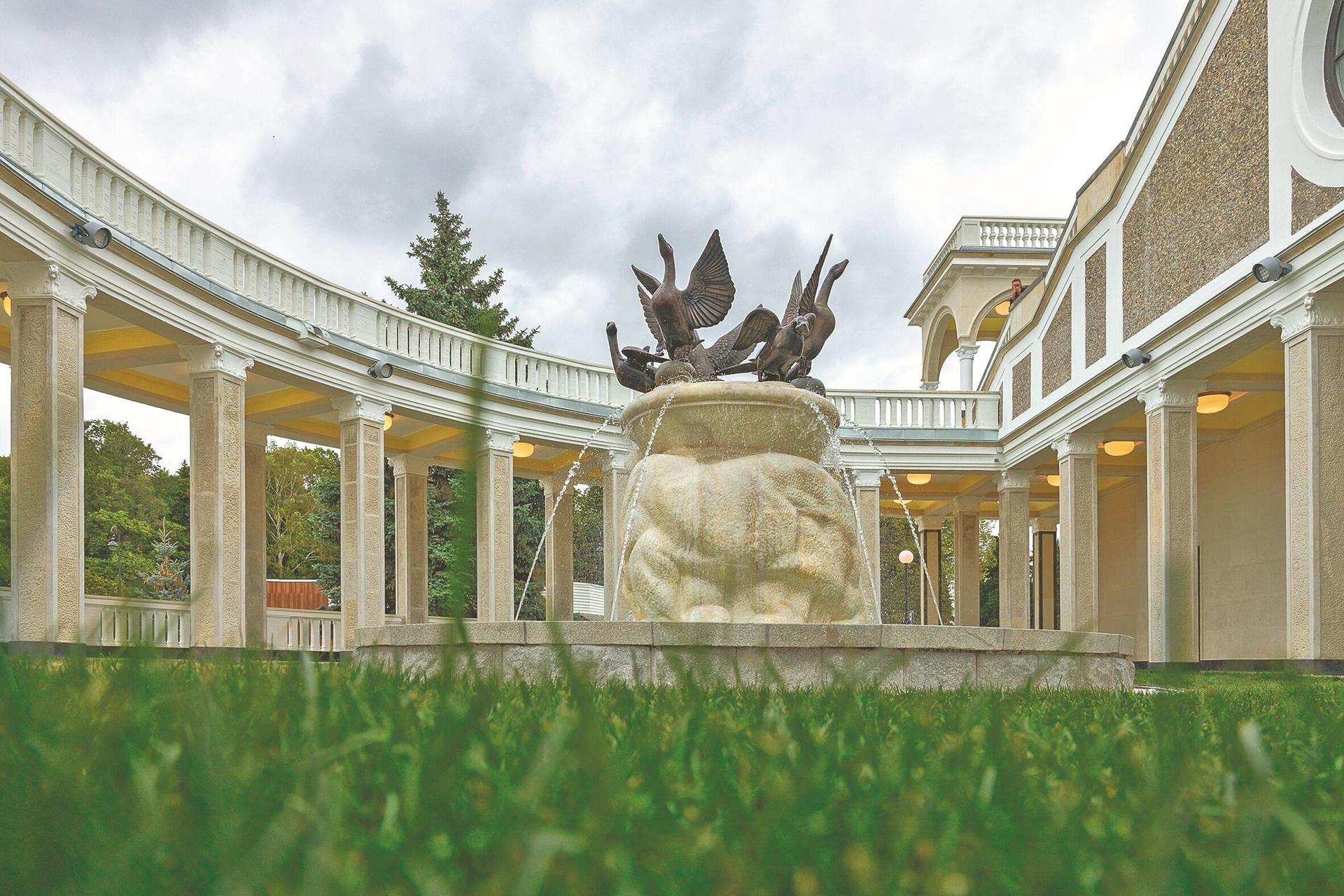 Были восстановлены исторические фонтаны «Север» и «Юг», украшающие внутренние дворы вокзала. Фонтан «Север», созданный скульптором Львом Кардашевым, посвящён Арктике и представляет собой композицию из мраморных белых медведей и птичьего базара. Фонтан «Юг», работы скульптора Ивана Ефимова, выполнен в виде чаши-капители с дельфинами, символизирующими Крым и Чёрное море.
