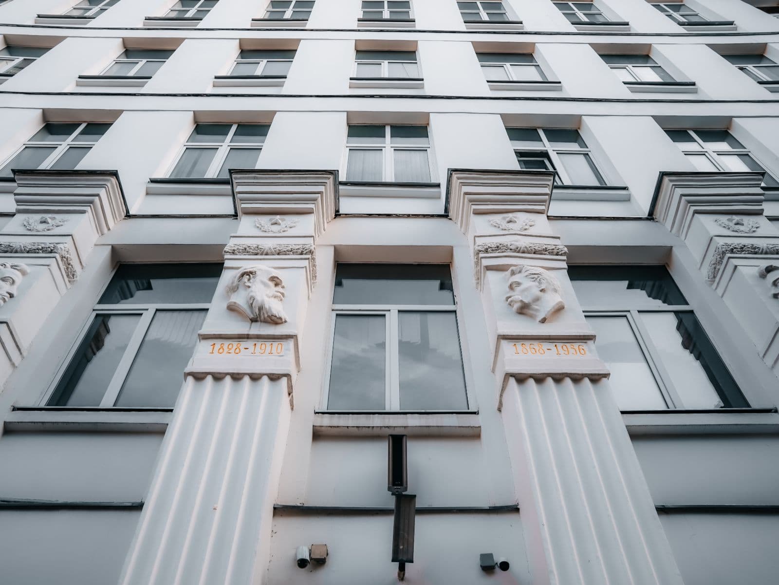 Проект здания был выполнен в двух вариантах — с южной и северной ориентацией главного фасада. В северном варианте крайние оси фасада представляли собой окна лестничных клеток и отличались от остальных окон. В этом варианте двери запасных выходов располагались на главном фасаде, тогда как при южной ориентации они находились на задней стороне здания.