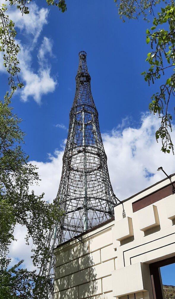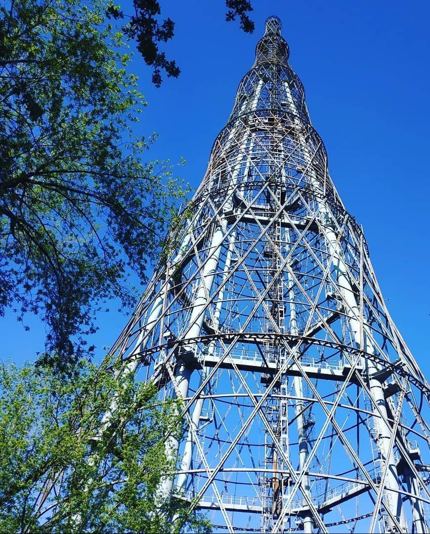Одной из сетчатых конструкций в форме гиперболоида вращения стала радиоантенная башня на Шаболовке.