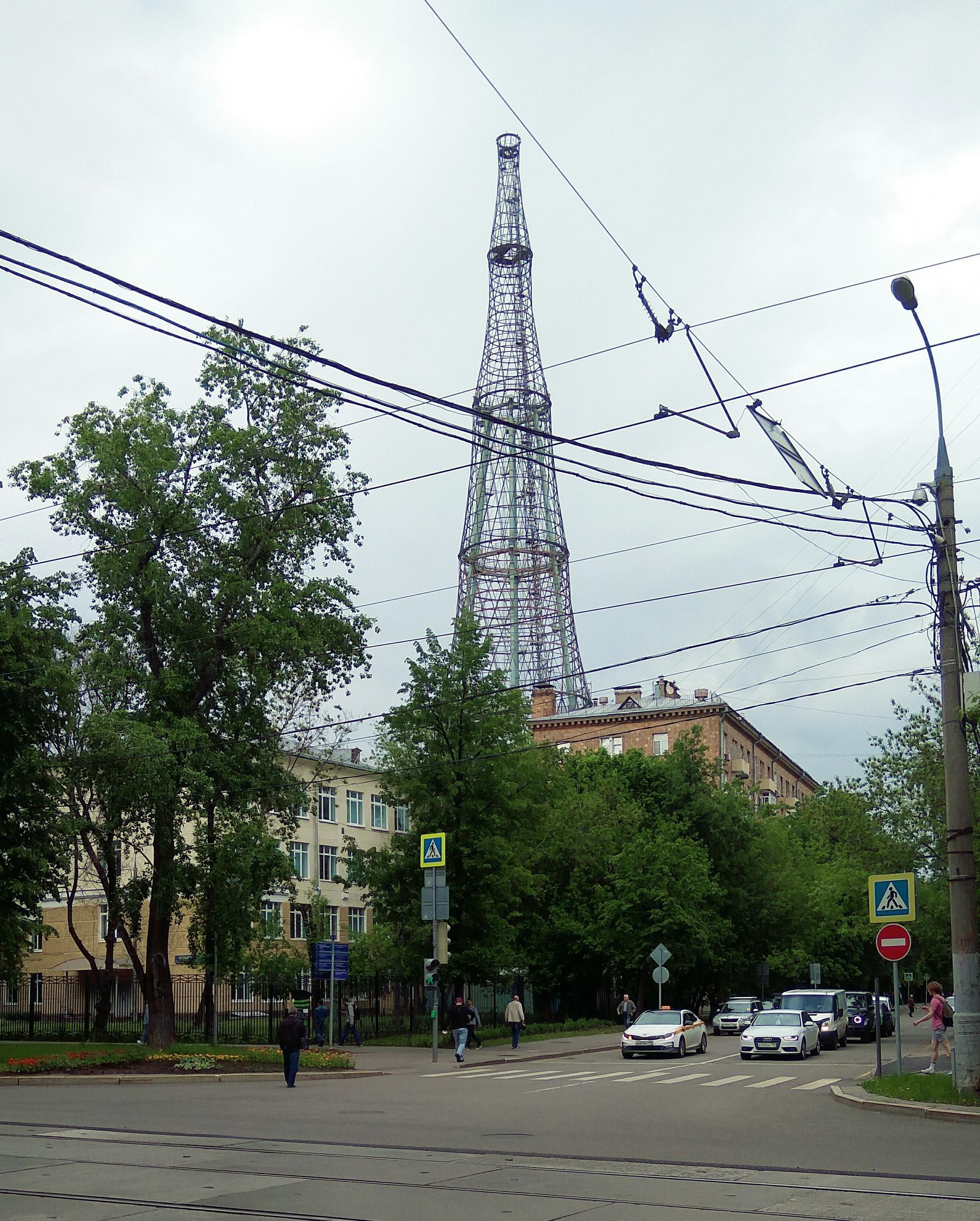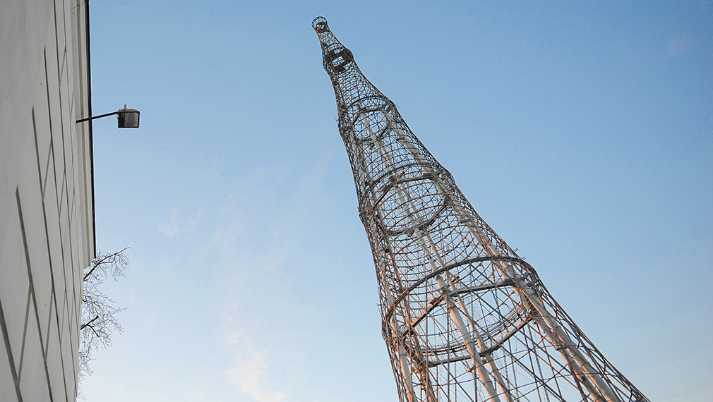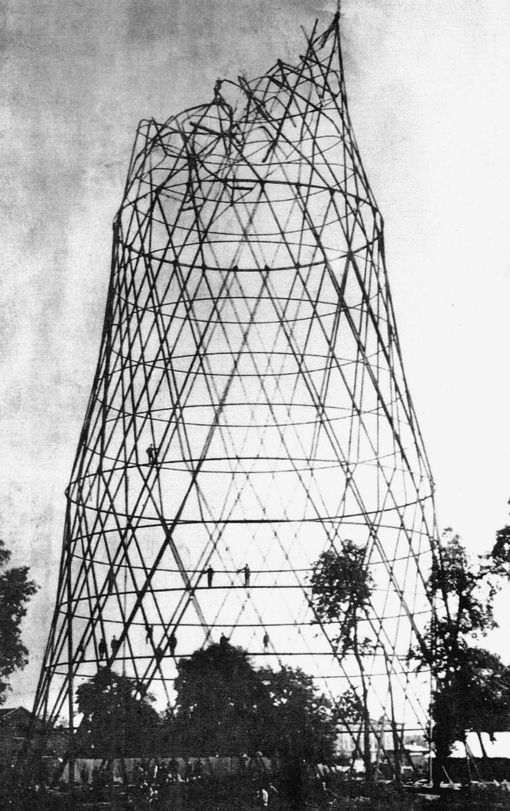 Одной из сетчатых конструкций в форме гиперболоида вращения стала радиоантенная башня на Шаболовке.
