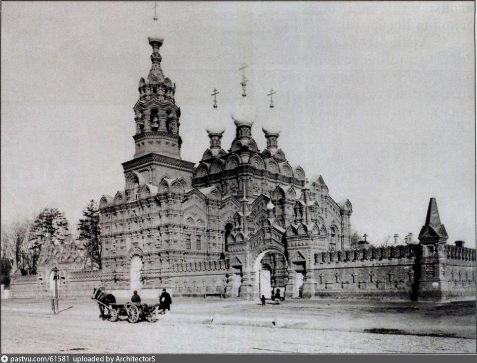 В 1891-1894 годах был построен краснокирпичный пятиглавый монастырский собор Спаса Всемилостивейшего в распространенном тогда неорусском (псевдорусском) стиле по проекту архитектора Ивана Терентьевича Владимирова. К собору примыкала красивая шатровая колокольня, оставшиеся два яруса которой сейчас подступают к тротуару перед Новослободской улицей. А тогда вокруг собора с колокольней был большой сад.