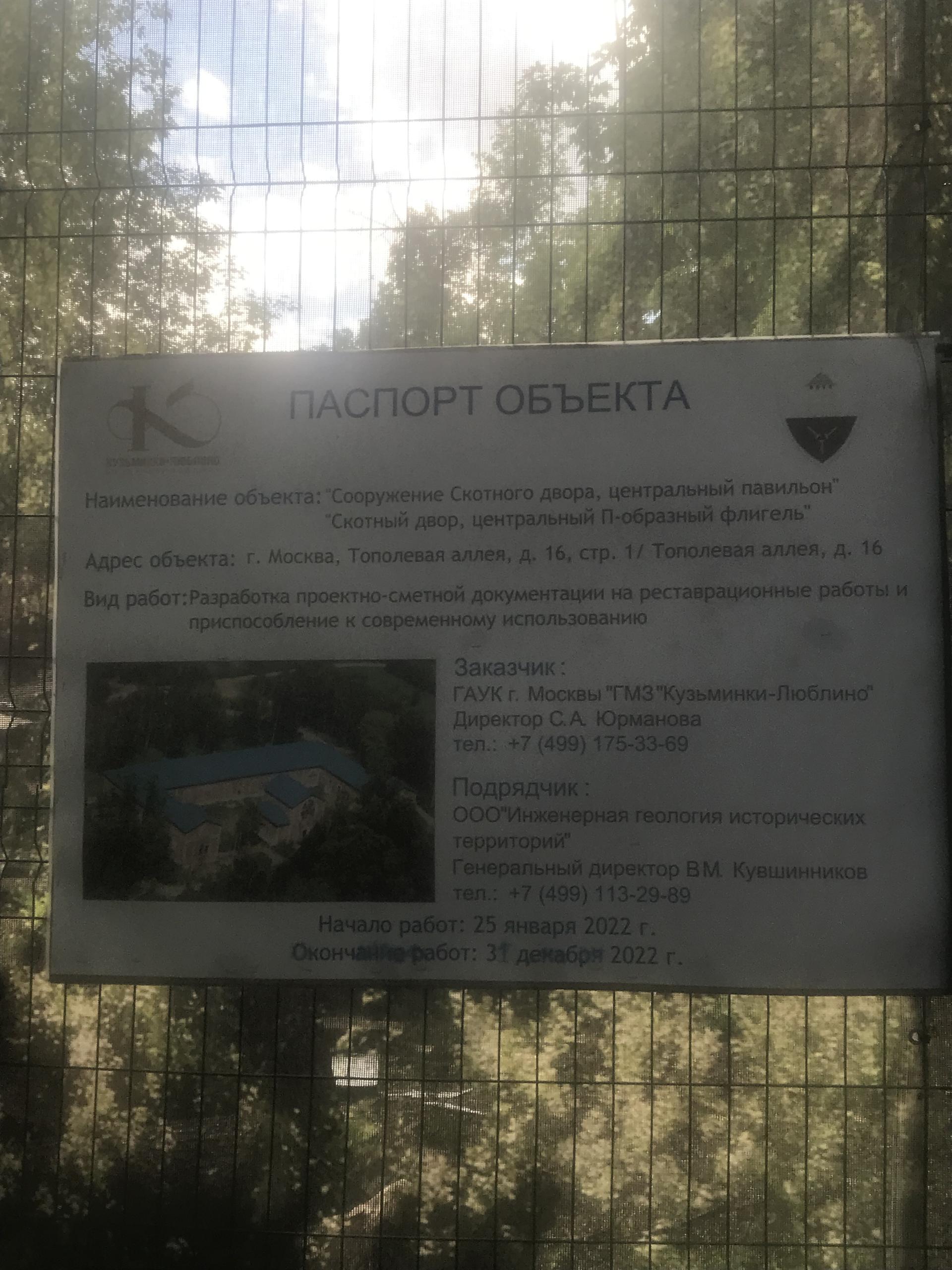 В конце Тополевой аллеи усадьбы Кузьминки на берегу Влахернского пруда располагается Скотный двор или Молочная ферма. Место для нее было определено еще при Строгановых. Постройки, сохранившиеся до наших дней, относятся к 1840 гг. и выполнены архитектором Александром Жилярди.