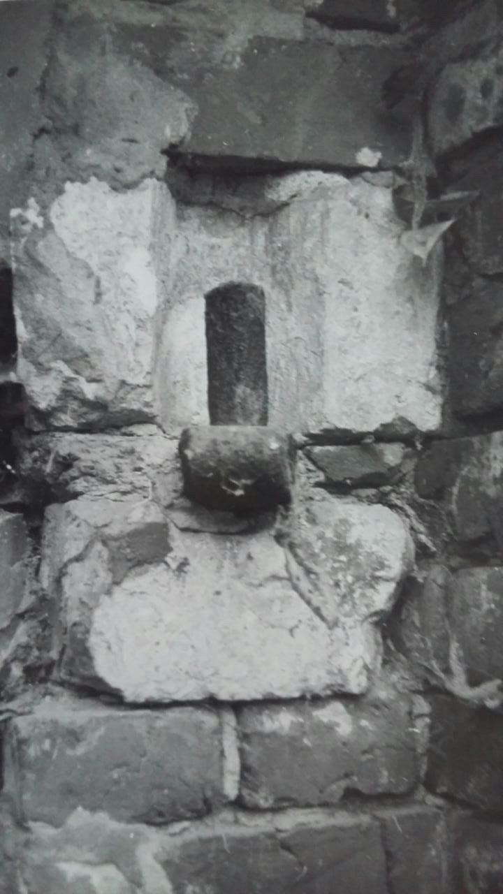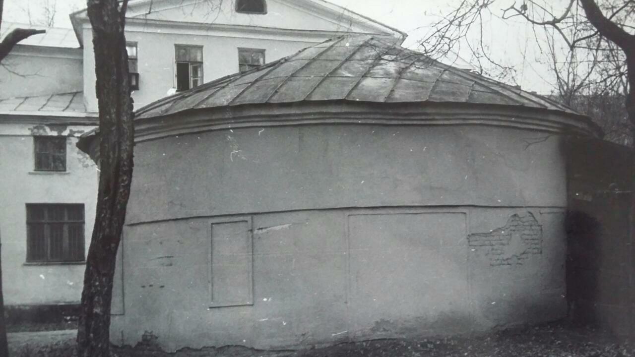 На плане 1857 года флигель – это одноэтажная каменная кладовая, уже утратившая первоначальное предназначение. Небольшой, полукруглый в плане флигель, по-видимому, не имел внутренних перегородок, а его южный фасад был расчленен пятью проемами. Центральный проем, скорее всего, использовался в качестве ворот.