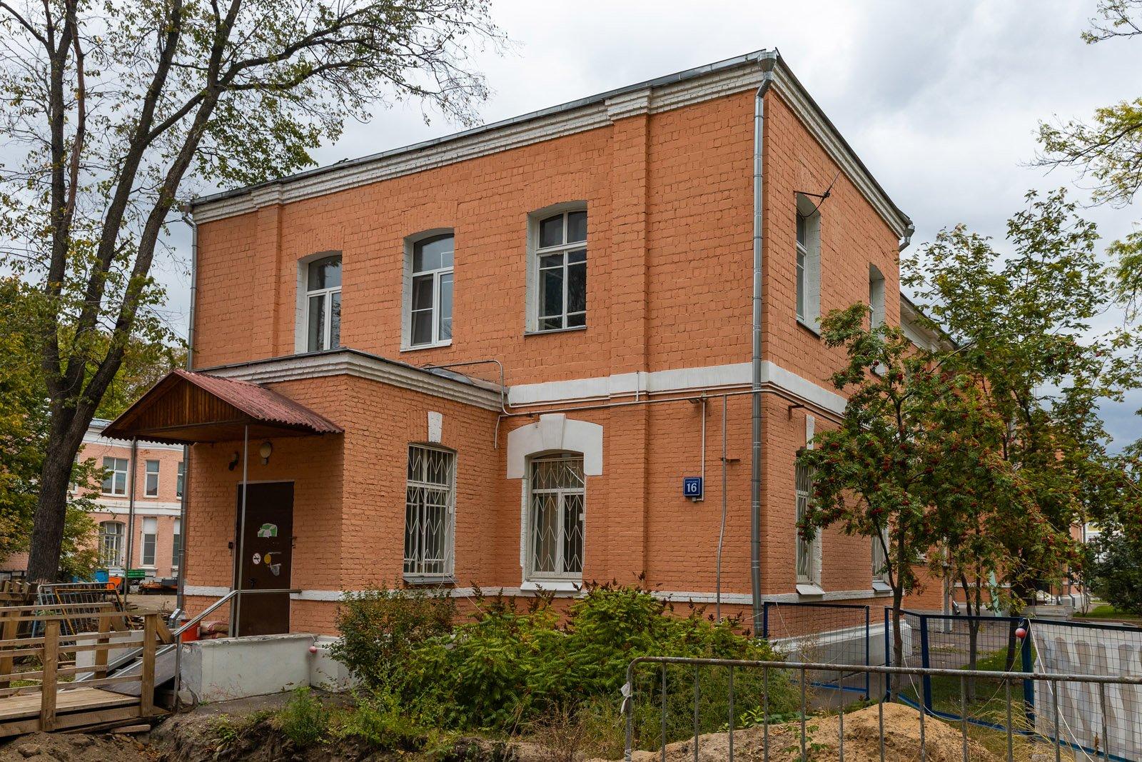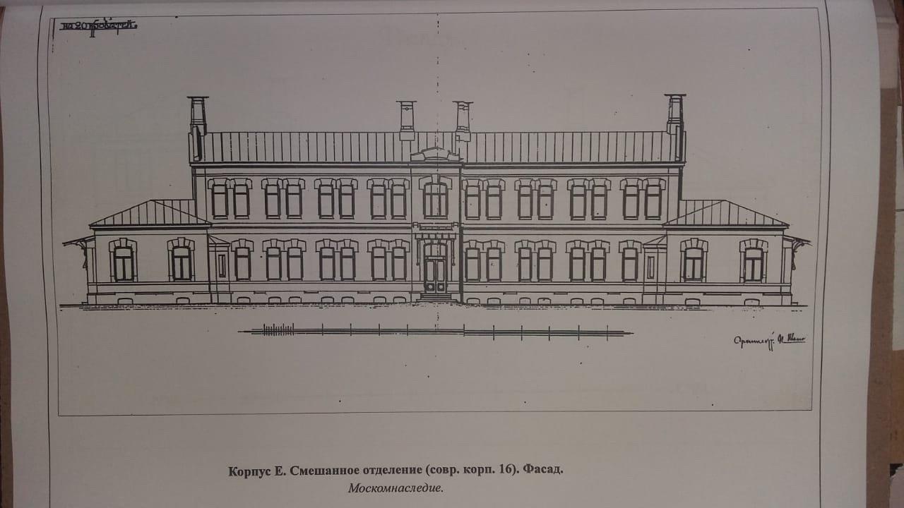 Двухэтажный корпус Смешанного отделения – весьма импозантное протяженное здание с симметричным фасадом, напоминающее небольшой дворец. Это одно из самых эффектных по композиции и пропорциям зданий больничного комплекса. Здание неоштукатуренное (изначально и до сих пор), и белокаменные декоративные детали эффектно выделялись на фоне краснокирпичных стен. Декор фасадов корпуса Смешанного отделения хорошо сохранился.