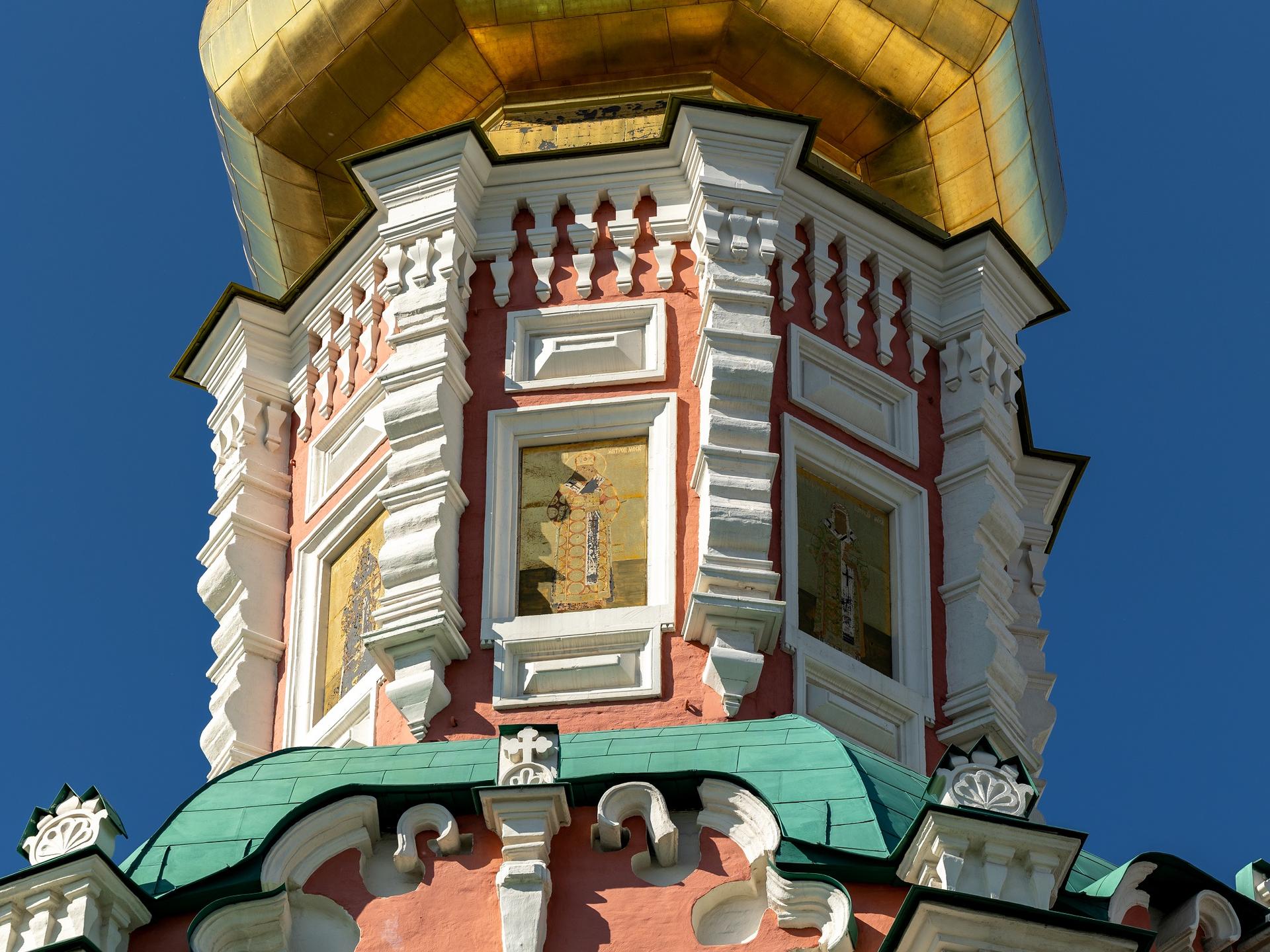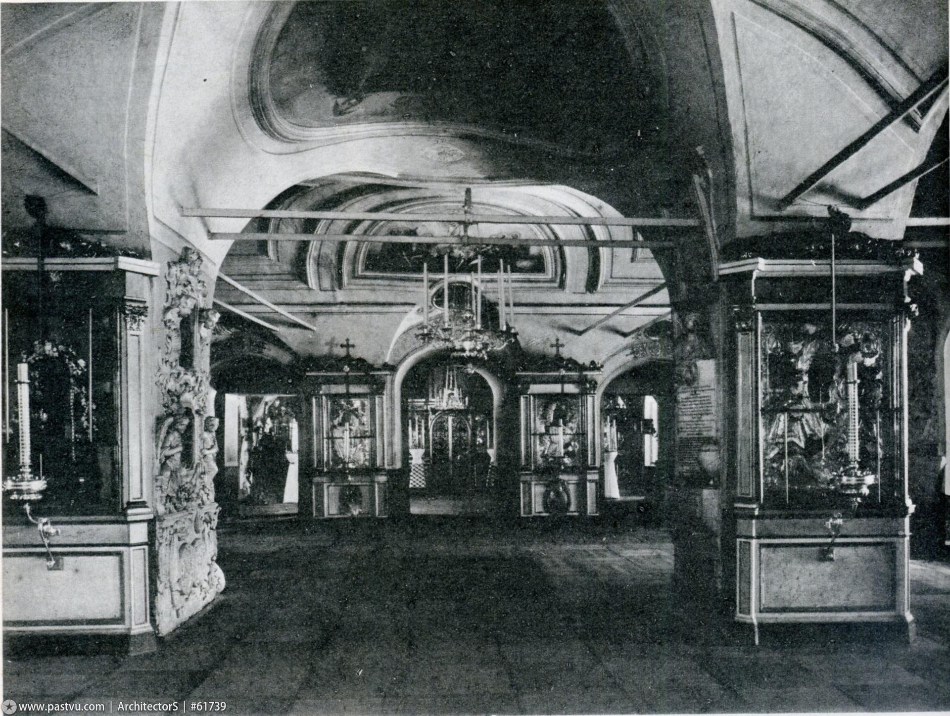 В нижнем храме, освященном во имя Казанской иконы Божией Матери, ранее находился обширный некрополь: здесь располагались усыпальницы самых знатных родов России – Голицыных, Шереметевых, Долгоруковых, Салтыковых и многих других. Собор сильно пострадал во время пожара 1812 года: от взрыва, произошедшего в Кремле, в здании лопнули железные связи, вылетели стекла и рамы, крест на колокольне согнуло пополам. В течение следующих нескольких лет здание было приведено в порядок.