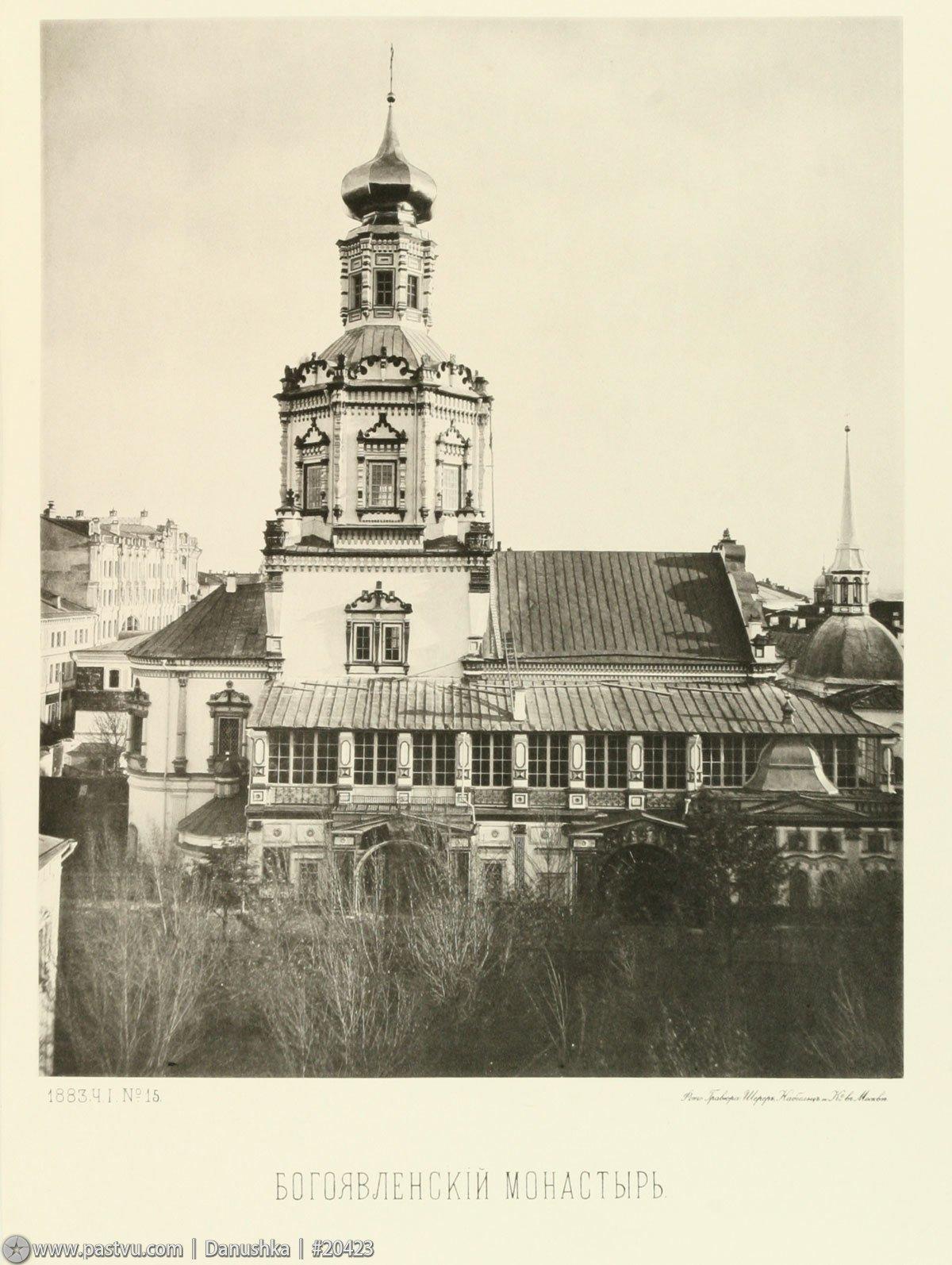 Богоявленский монастырь по праву считается одним из древнейших в Москве: он был основан первым московским князем Даниилом Александровичем в 1296 году – старше него только Данилов монастырь. Поначалу все здания обители были деревянными, но в 1342 году на пожертвования боярина Протасия возводится первый каменный собор Богоявления. В дальнейшем все перестройки велись на основе этого здания: в 1571 году после нашествия крымского хана Девлет‑гирея, потом в 1624 году по окончании Смутного времени. Наконец, в 1693‑1695 годах на фундаментах старого собора было возведено существующее здание. Впоследствии оно несколько раз обновлялось, но структура более не менялась.