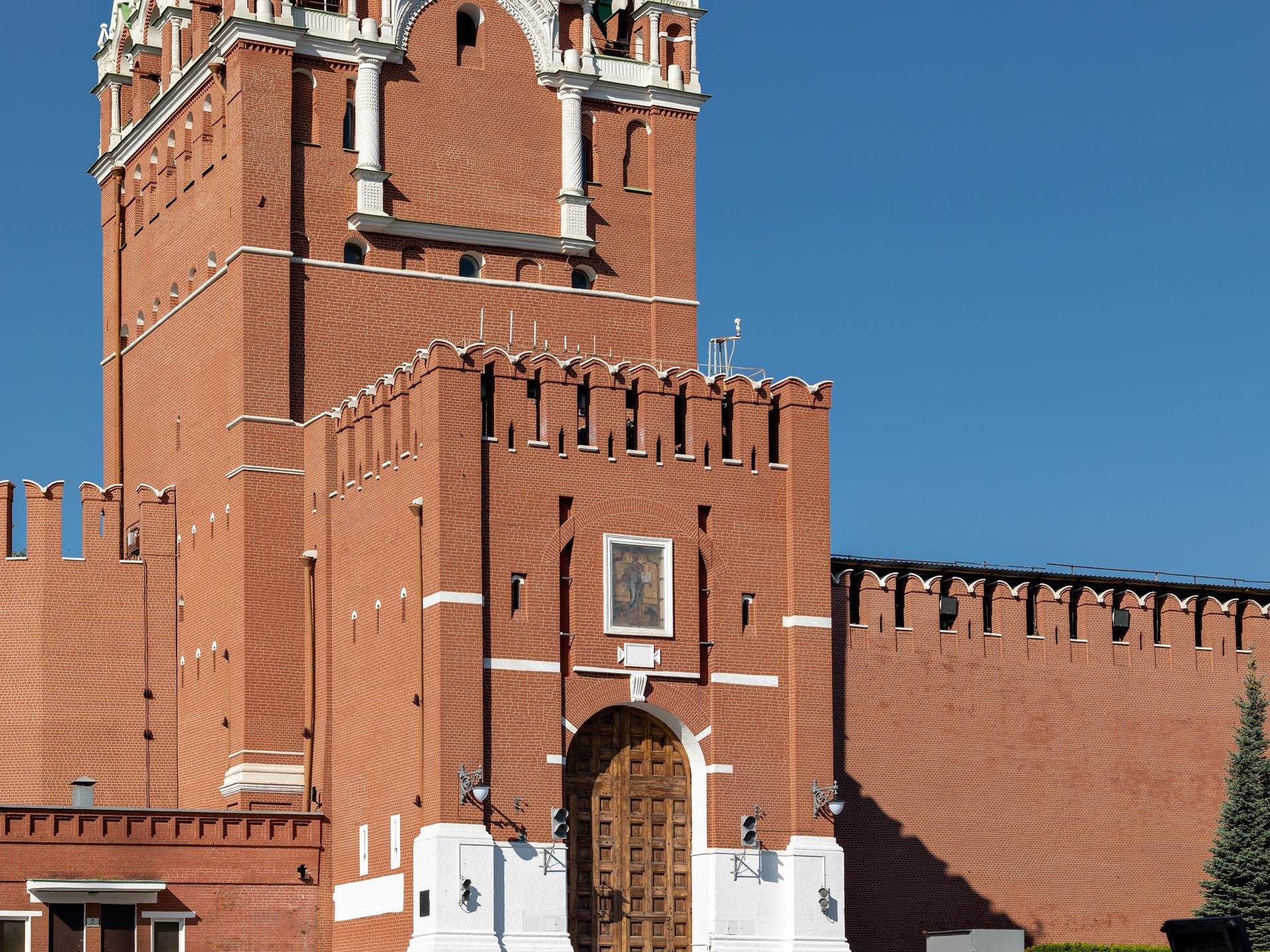Возведена в 1491 году архитектором Пьетро Антонио Солари. Ее строительство положило начало сооружению восточной линии укреплений Кремля. Башня расположена на месте Фроловской стрельницы 1367-1368 годов. Ее ворота, выходящие на Красную площадь, всегда были главным парадным въездом в Кремль. Они особенно почитались в народе и считались святыми. Ворота служили для выездов царя, торжественных выходов патриарха, встреч иностранных послов.