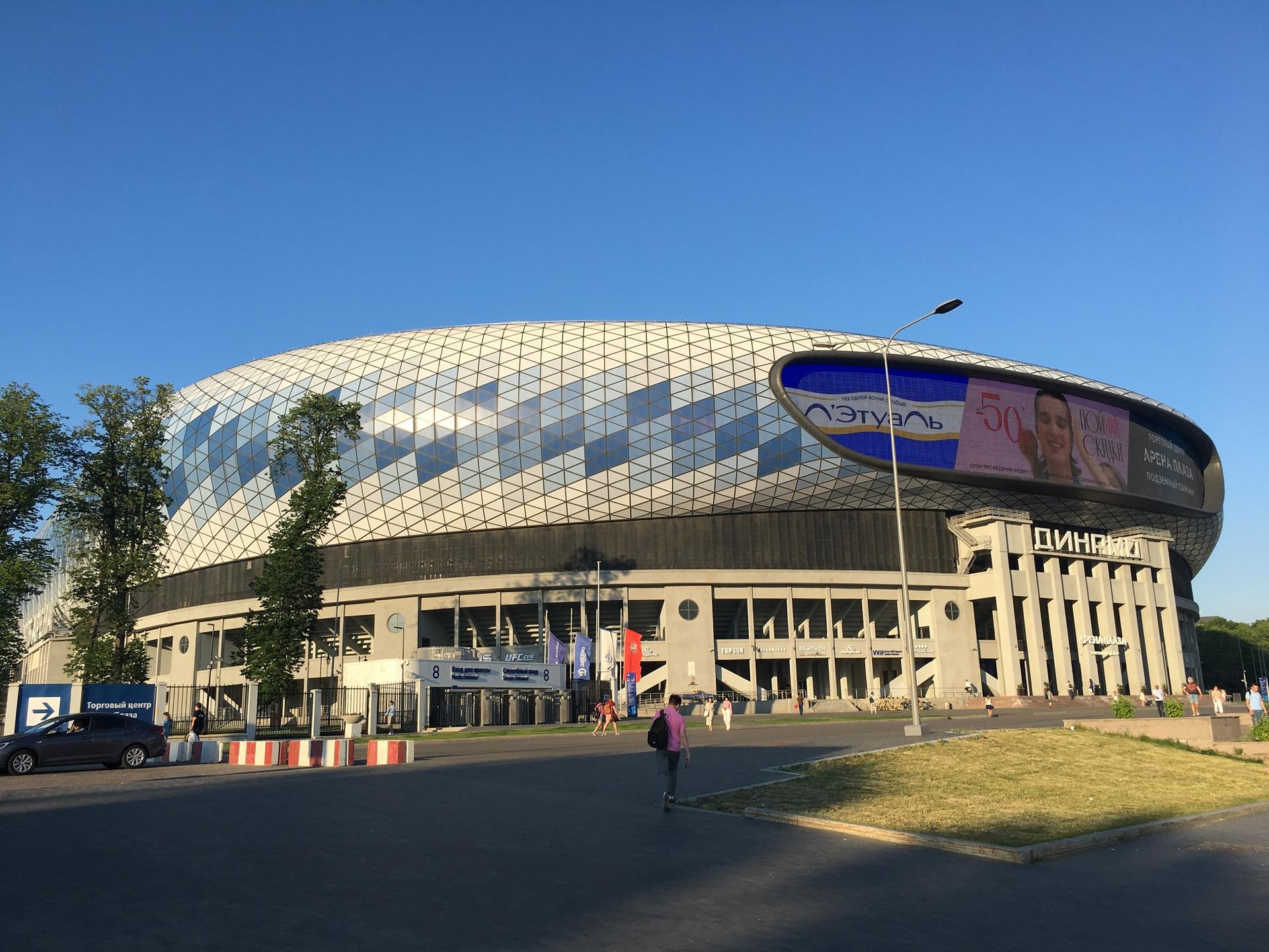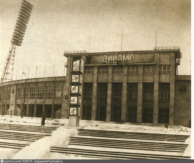 Стадион «Динамо» был построен по проекту архитекторов Л.З. Чериковера и Аркадия Лангмана в парковой зоне. Строился стадион с 1925 по 1928 год, и первоначально - до 1935 года - выглядел иначе, нежели сегодня. Стадион тогда имел вид подковы, а под трибунами - находился мотовелотрек. В 1935 году стадион подвергся значительной перестройке: была построена восточная трибуна, замкнувшая подкову. Новый облик главной спортивной арены уже не сохранился до наших дней. Помимо основного сооружения, на территории стадиона был построен малый стадион с трибуной на 4 200 мест, а по самой территории были рассредоточены городошные, волейбольные и баскетбольные площадки, теннисные корты. В 1957 году был построен закрытый плавательный бассейн. С 1971 года началось строительство двух больших корпусов: одного - для гимнастического зала и зала для хоккея и фигурного катания, а другого - под футбольно-атлетический манеж. Строились эти сооружения по проекту архитектора С.Серебряного. В те же годы на малом стадионе была построена вторая трибуна, и вместимость стадиона удвоилась. На основной территории стадиона «Динамо» у северного входа стояло двухэтажное здание со своей историей, в нем размещался музей спортивного общества «Динамо. Стены этого дома повидали немало известных атлетов и их поклонников. Помимо спортивного назначения, стал местом проведения многотысячных митингов, собраний, парадов. На стадионе выступали известные политические деятели, Максим Горький, популярные артисты, читал стихи Маяковский. Были в истории стадиона «Динамо» и свои исторические вехи. Первая Всесоюзная спартакиада народов состоялась на «Динамо» в день его официального открытия — 17 августа 1928 года. Кстати, именно тогда страна узнала незабываемого Вадима Синявского, имя которого отныне навсегда будет связано со стадионом «Динамо»: «Говорит и показывает Москва! Наш микрофон установлен на московском стадионе “Динамо”...» А тогда, 17 августа, Вадим Синявский провел свой первый радиорепортаж. Первый Всесоюзный слет пионеров тоже прошел на «Динамо» — в августе 1929 года. И первый матч первого футбольного чемпионата страны 29 мая 1936 года состоялся на «Динамо», как и первый финал Кубка страны в августе того же года. С началом Великой Отечественной войны спортивная жизнь в столице не прекратилась, но замерла на время. Из сотен тысяч московских спортсменов-добровольцев летом 1941 года на стадионе «Динамо» формировались отряды отдельной мотострелковой бригады особого назначения (ОМСБОН), сражавшиеся и на фронтах, и в тылу врага. Но и в годы войны на «Динамо» проводились спортивные состязания, а уже 27 августа 1944 года, за год до окончания войны, на том же «Динамо» был проведен финал очередного Кубка страны по футболу. В начале 50-х годов на стадионе произошло еще одно событие, сказавшееся на развитии отечественного футбола. Введение регулярного электрического освещения на футбольных матчах, позволившее в будничные дни проводить соревнования в вечернее время, не отвлекая зрителей от работы.