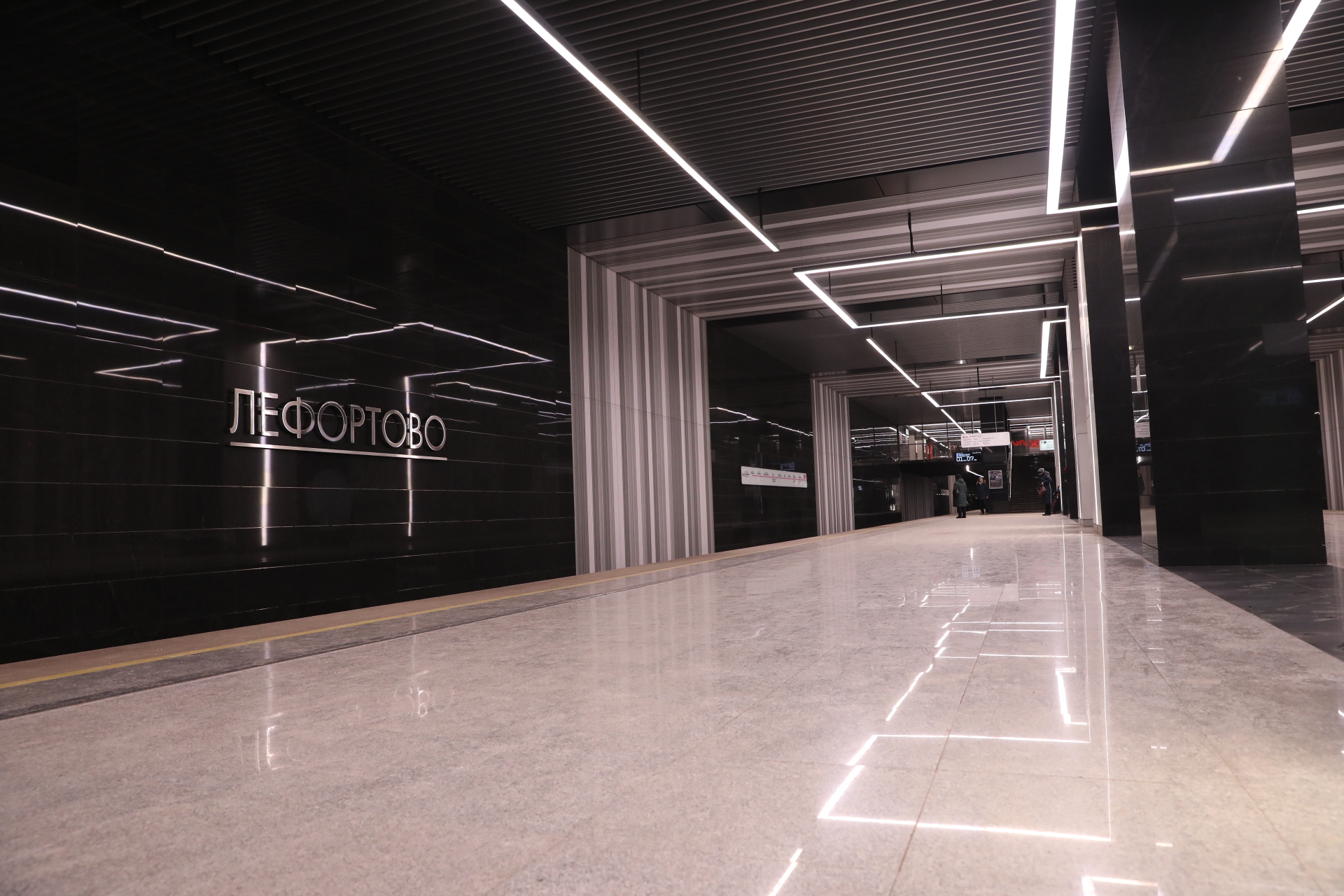 Монохромные тематические рисунки в кассовом зале и вестибюле словно по крупицам воссоздают свидетельства о богатом историческом наследии района Лефортово, в честь которого станция получила свое название.