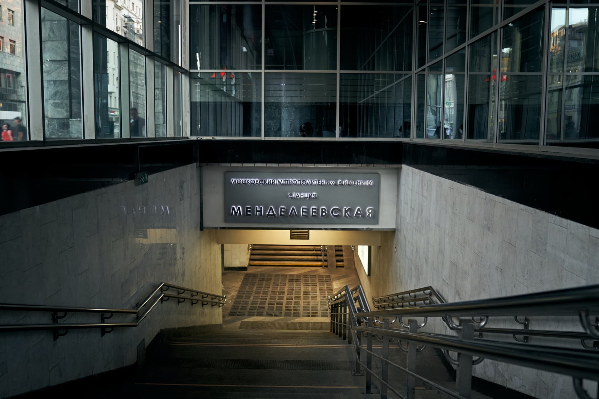 «Менделеевская» — пересадочная станция Серпуховско-Тимирязевской линии Московского метрополитена, открытая 31 декабря 1988 года в составе участка «Чеховская» — «Савёловская». Станция названа по расположенному поблизости Московскому химико-технологическому институту им. Д.И. Менделеева, позднее РХТУ им. Д.И. Менделеева. Она занимает заметное место в истории московского метро конца 1980-х годов и относится к тем станциям, которые отличаются целостностью замысла: архитектурное решение, конструкция и художественное оформление подчинены общей теме.