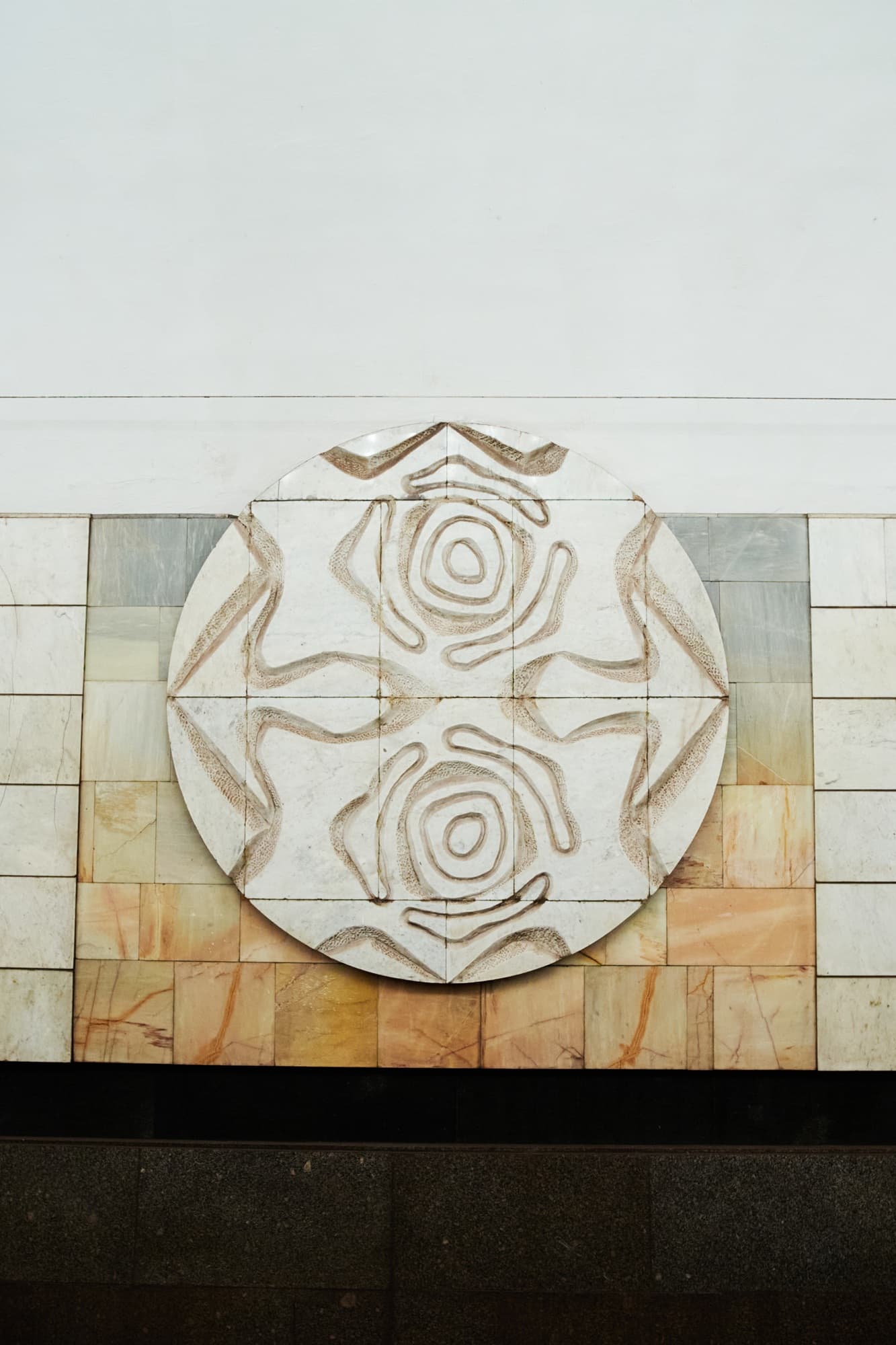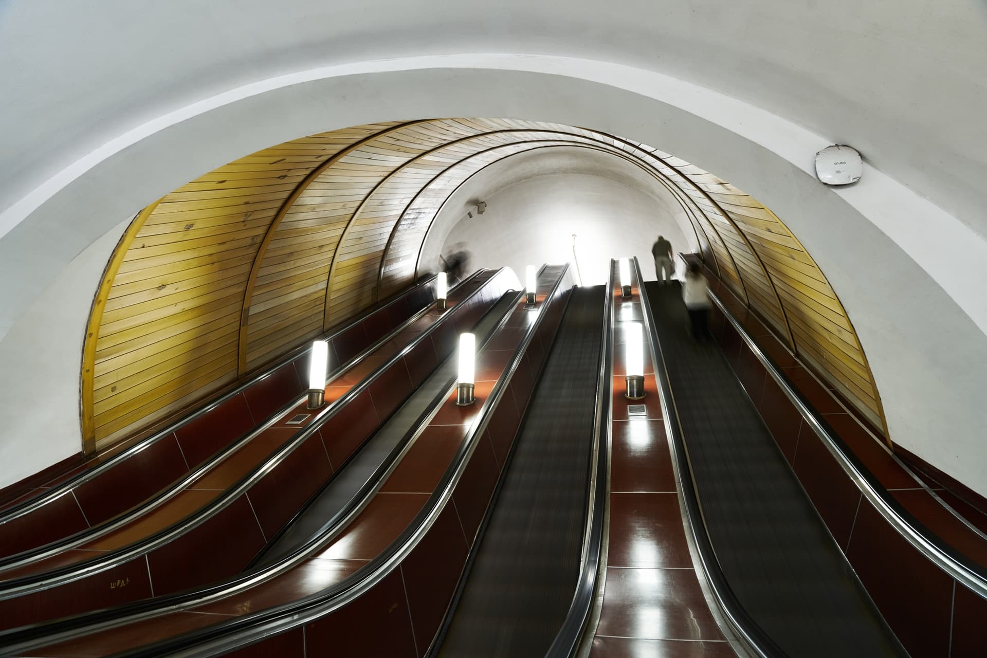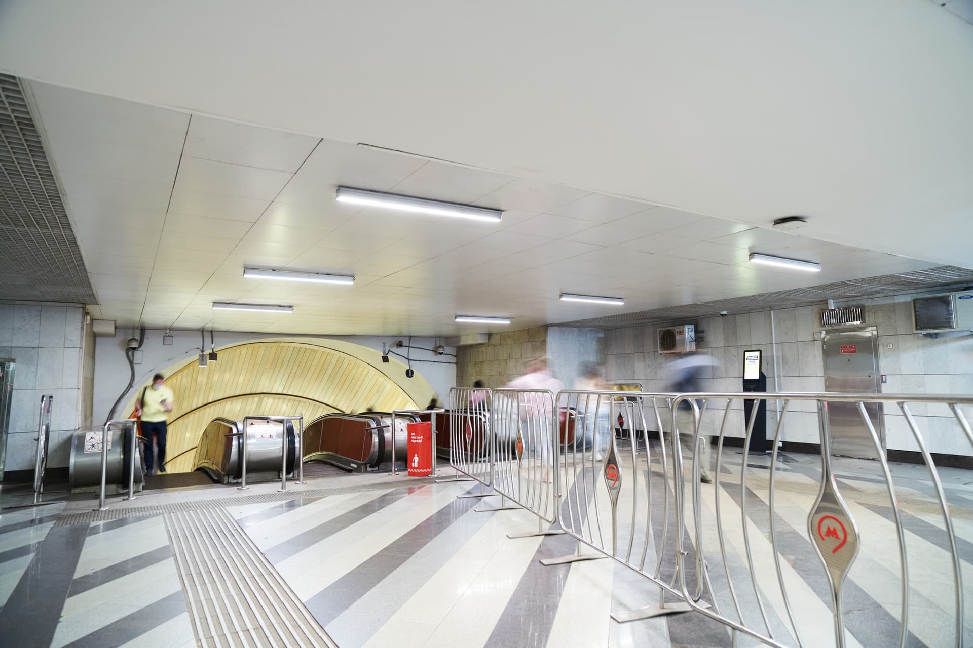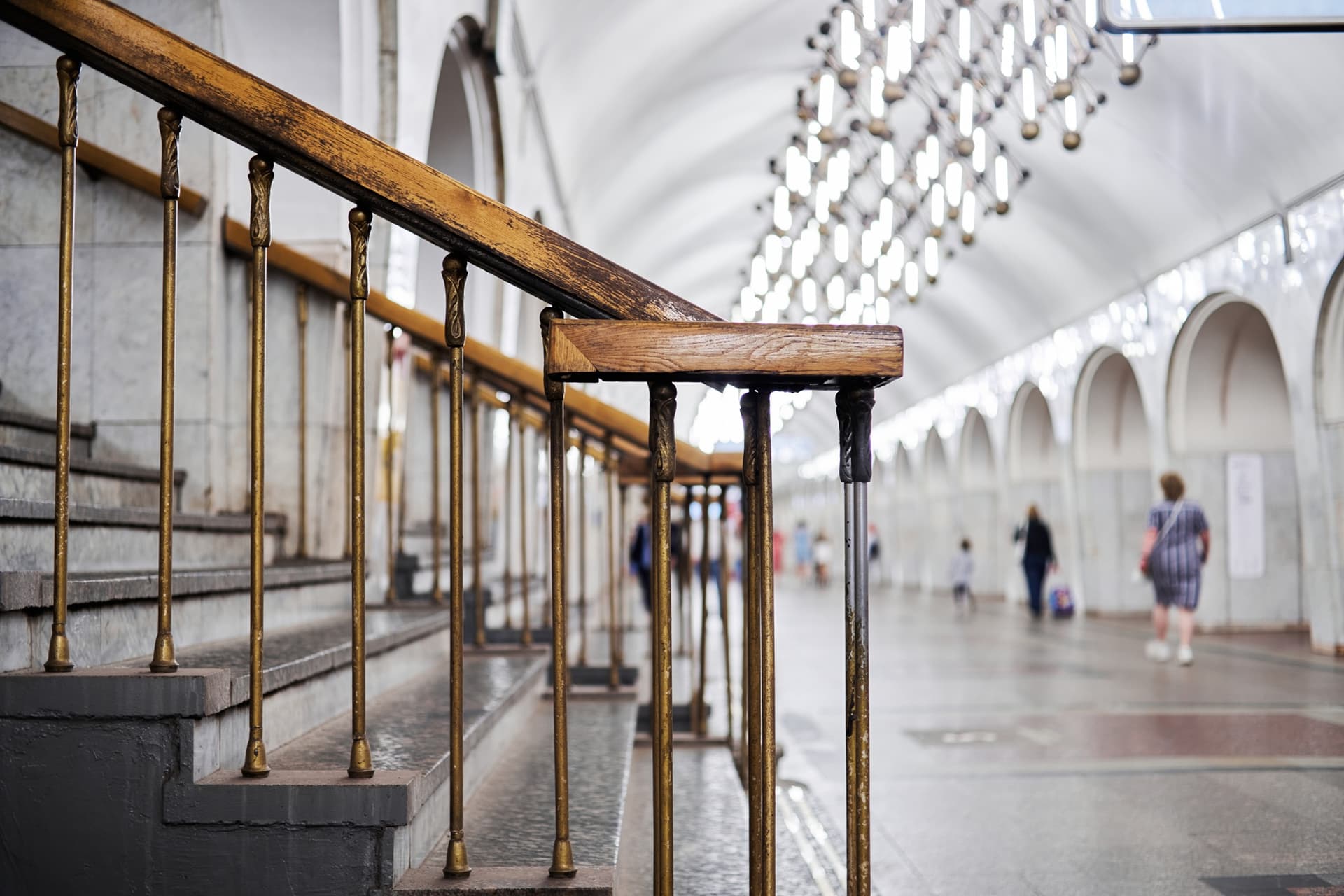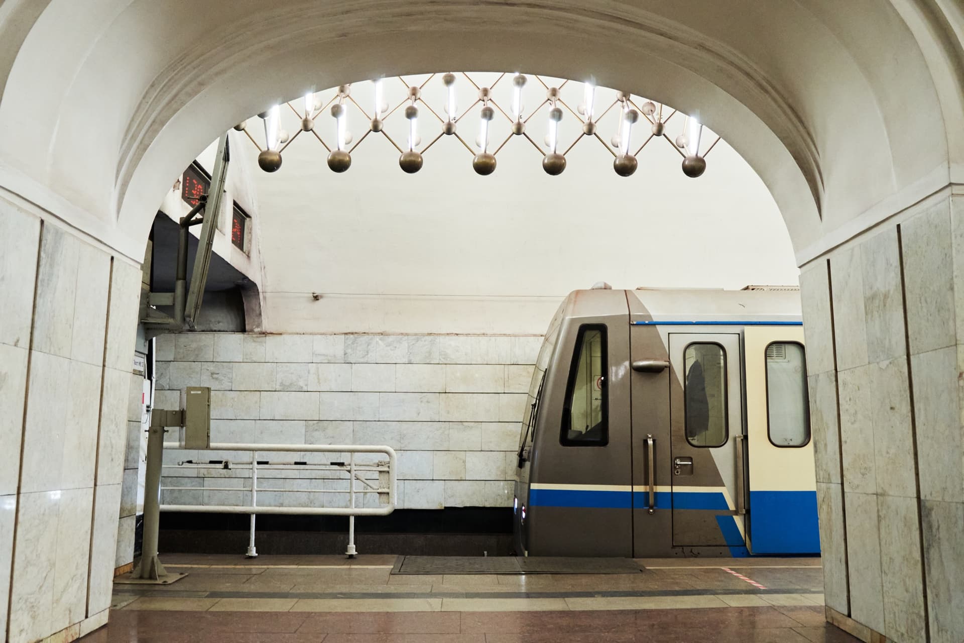 По конструкции это пилонная трехсводчатая станция глубокого заложения. Ее своды опираются на колонны через фасонные клинчатые перемычки. Такое решение определяет и пространственное восприятие станции: центральный зал строится на четком ритме арок и проходов, а сама архитектура не отделена от инженерной схемы, а вырастает из нее.