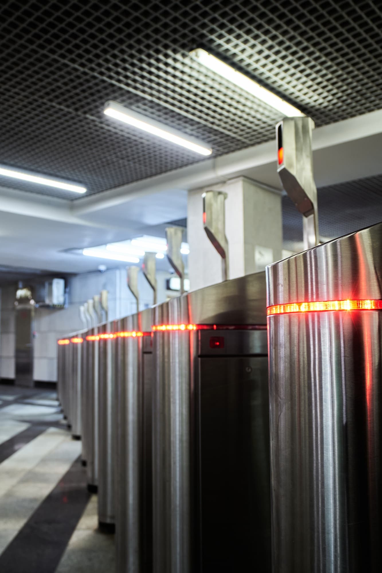 Проходы между тоннелями имеют замкнутую бетонную или железобетонную обделку. Грунт между соседними тоннелями заменяют бетоном. При наличии напорных грунтовых вод гидроизоляцию выполняют из металлических листов, сваренных между собой и заанкеренных в бетоне обделки прохода. Боковые тоннели обычно имеют диаметр 8,5 м, на части станций — 9,5 м; центральный зал, как правило, имеет диаметр 9,5 м, а на некоторых станциях — 8,5 м.