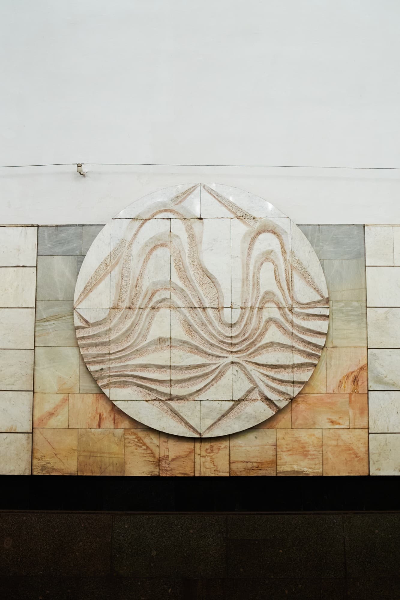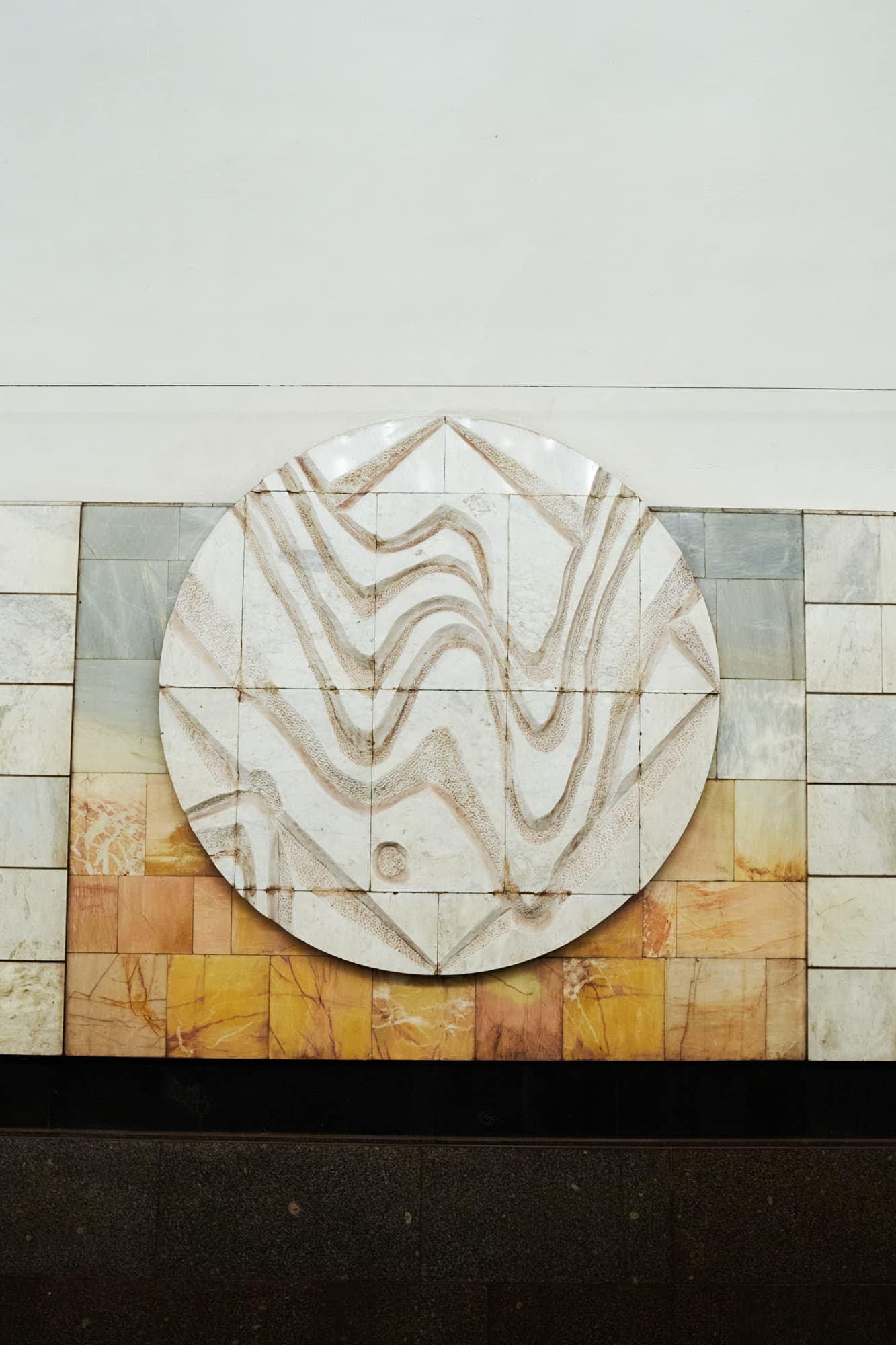 Для Алёшиной был особенно важен не только общий замысел, но и то, как он реализуется в материале. Она постоянно следила за строительством, работала с поставщиками камня, требовала точного исполнения проекта и лично контролировала подбор отделочных материалов. В ее практике это не было второстепенной частью работы. Напротив, она исходила из того, что архитектурное решение существует не отдельно от строительства, а раскрывается именно в качестве исполнения. По этой причине она уделяла большое внимание мрамору, металлу, стеклу, рисунку облицовки и устройству светильников. Одной из ее важных тем стало применение анодированного алюминия, который она последовательно вводила в оформление станций с начала 1970-х годов. Для нее металл был не просто современным материалом, а средством изменить характер типового пространства и придать ему отчетливый архитектурный образ.