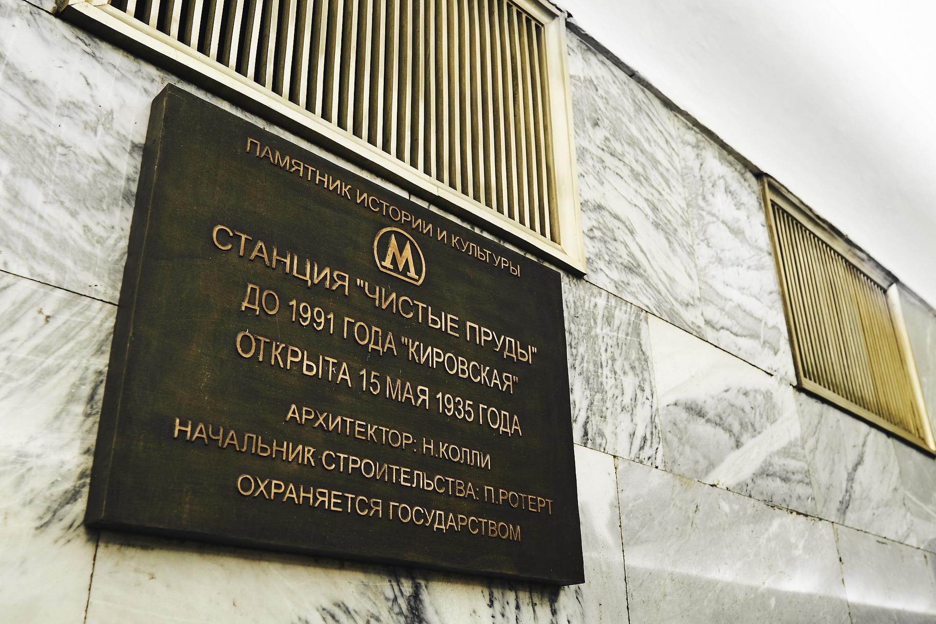 Первоначальное название станции – «Кировская» по находившейся здесь улице Кирова (ныне — Мясницкой), названной в честь государственного и партийного деятеля СССР Сергея Мироновича Кирова (1886—1934). В 1990 году переименована в «Чистые пруды».