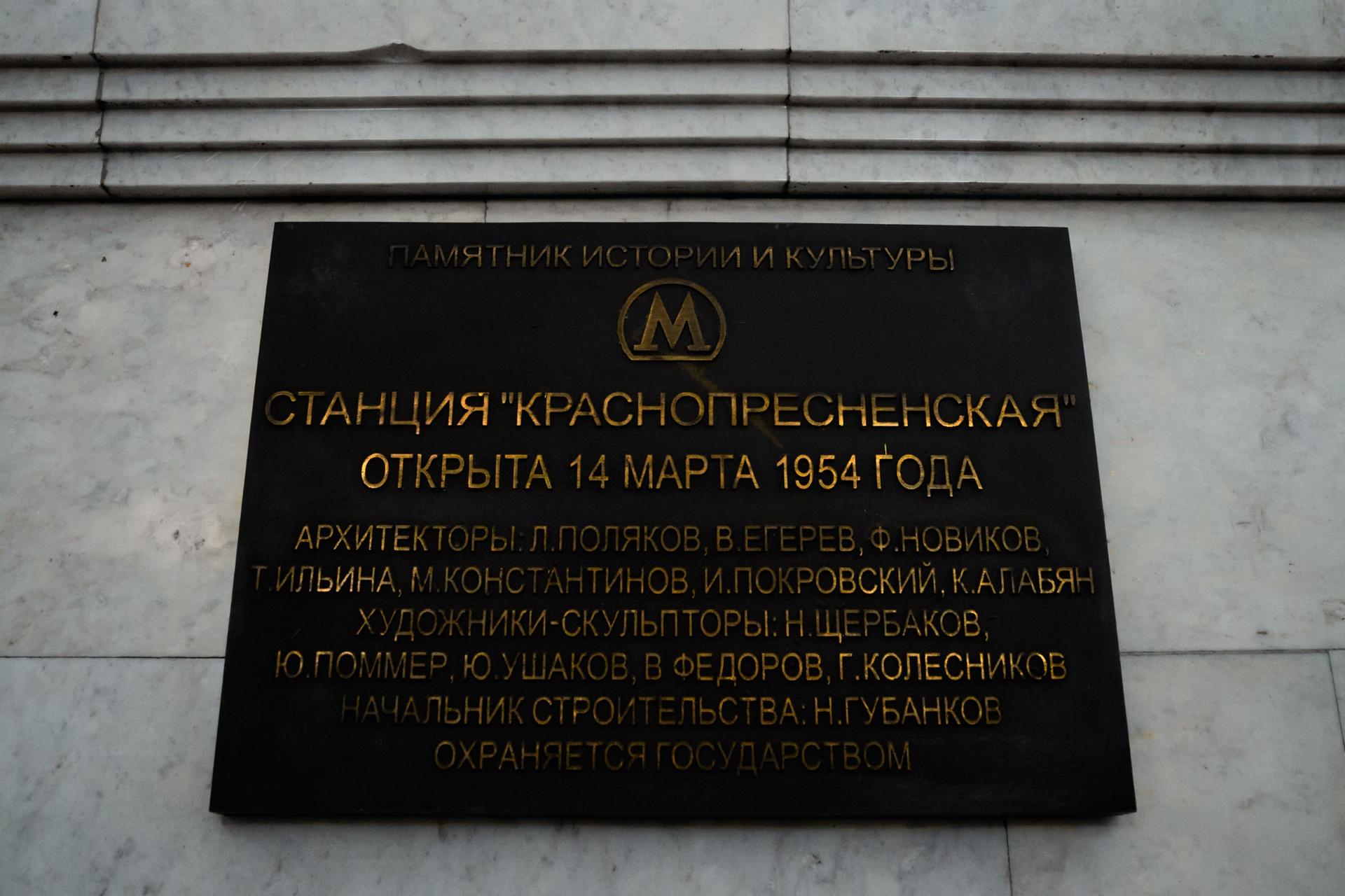 Краснопресненская — одиннадцатая станция Большого кольца (всего их двенадцать). Название станции дано по улице Красная Пресня. Дата открытия станции: 14.03.1954.