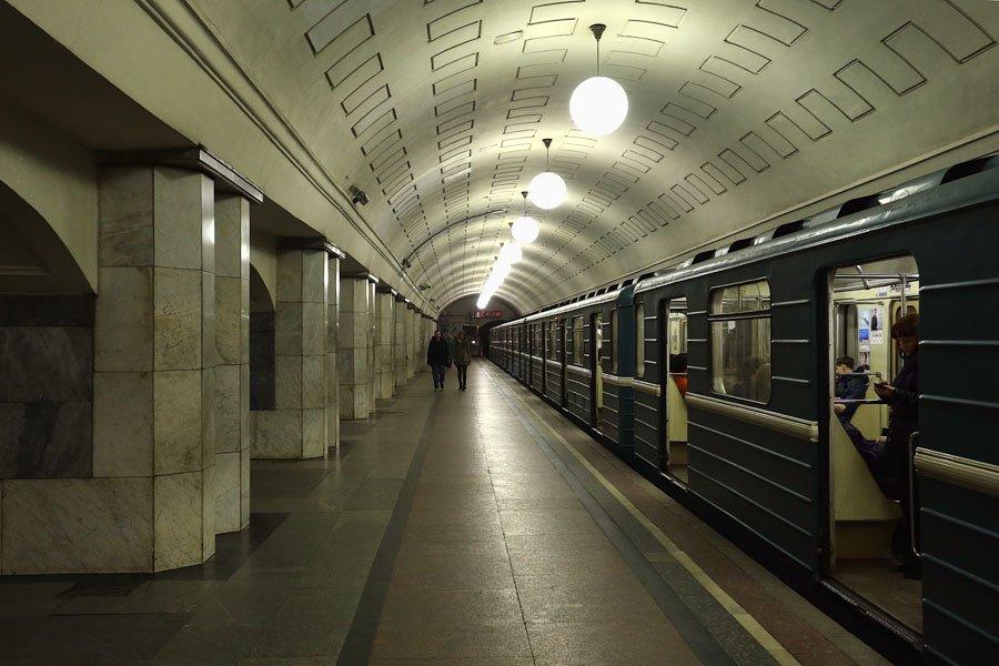 Своды станционного зала опираются на массивные пилоны, выполненные в виде сдвоенных многогранных колонн. Пилоны облицованы белым и серым мрамором. Путевые стены покрыты белой керамической глазурованной плиткой. Пол выложен серым гранитом. Зал освещают шаровые светильники, укрепленные на потолке.