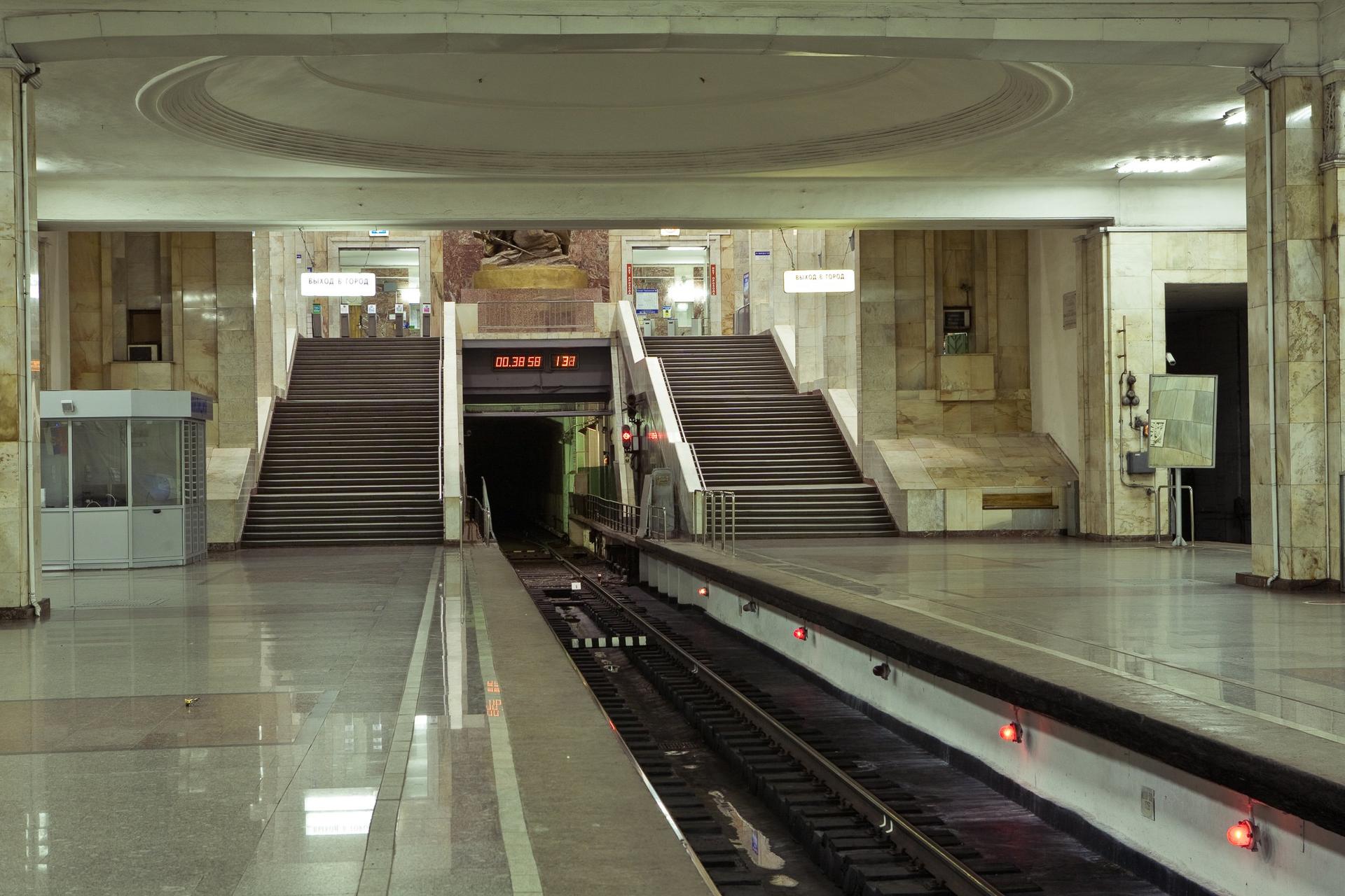Станционный зал отличает наличие трёх путей и двух платформ. Еще до войны недалеко от станции предполагалось сооружение огромного "Стадиона народов" и, чтобы исключить давку на платформах после окончания массовых спортивных мероприятий, на станции построено три пути. Но, по ряду причин, строительство стадиона было заморожено. Сегодня используется только два станционных пути.
