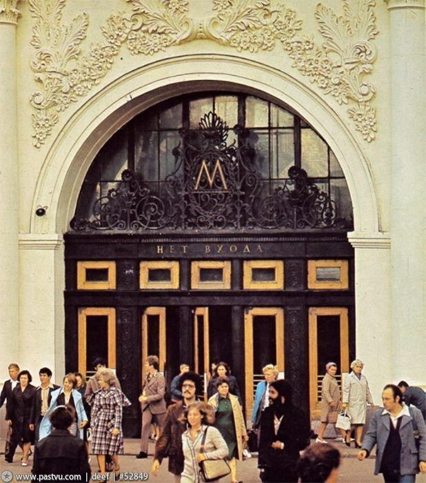 Открылась «Арбатская» с одним наземным вестибюлем, стоящем в 100 метрах от вестибюля станции «Арбатская» Филевской линии, а между ними находился фонтан. Однако в 1970‑х годах началось строительство здания Генерального штаба министерства обороны, этот наземный павильон был поглощён новым сооружением и оказался в его атриуме. Старые вход и выход замуровали, а новые были встроены в здание со стороны улицы Воздвиженка.
