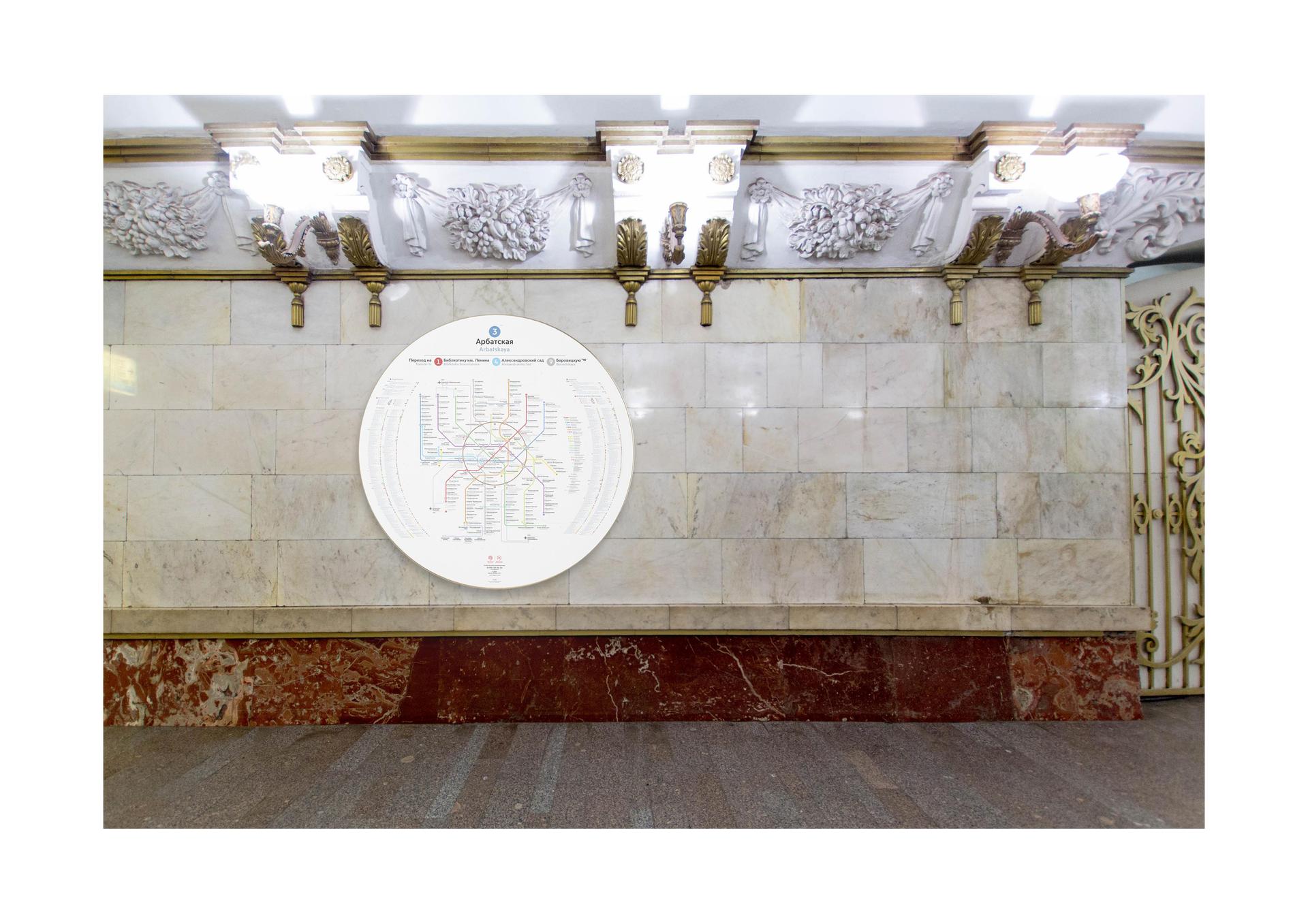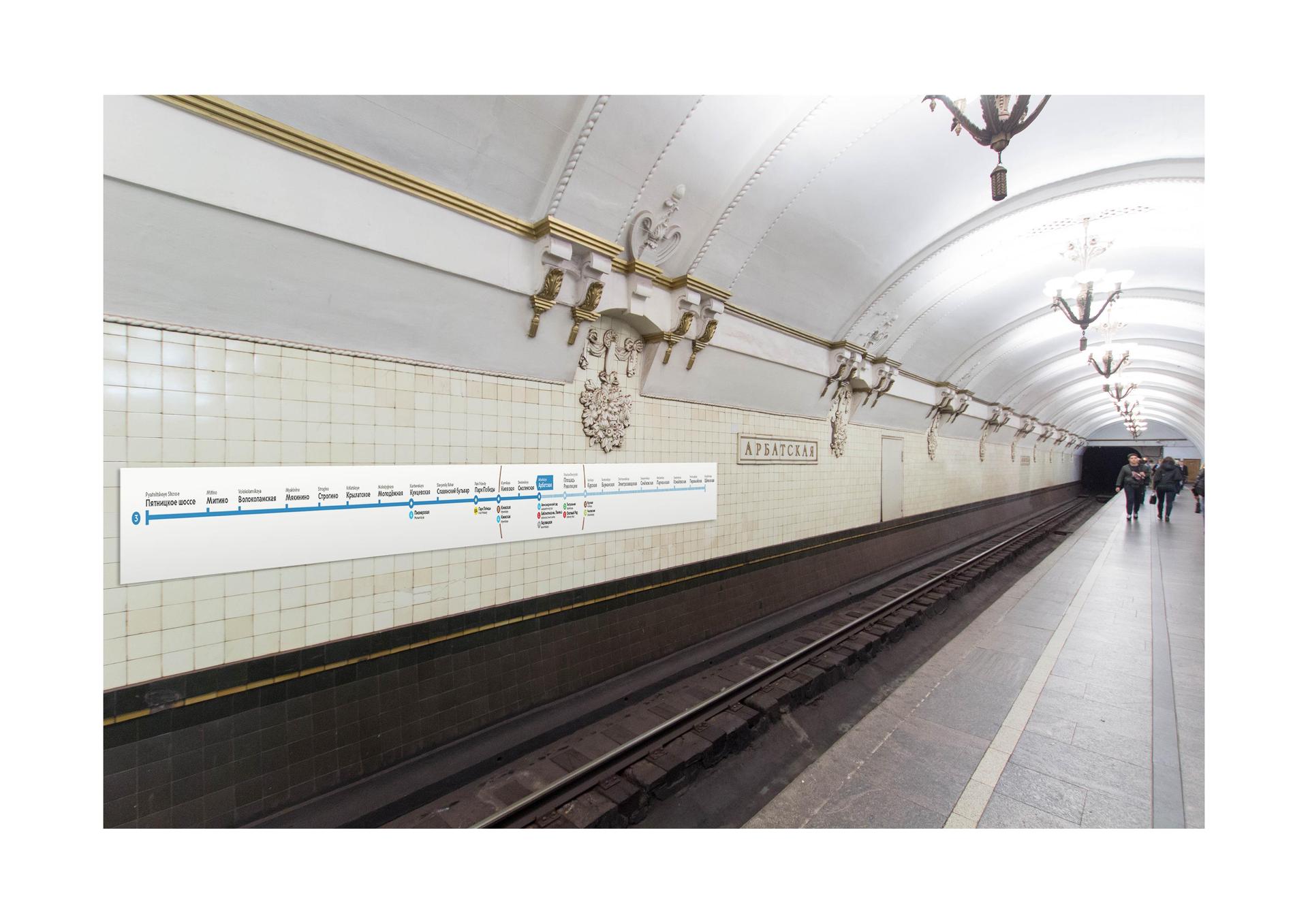 «Арбатская» – одна из самых длинных станций московского метро, длиннее только «Воробьевы горы». Из-за такой протяженности создается ощущение зрительно бесконечной перспективы. Основная архитектурная тема станционного зала – параболическая аркада: пилоны, расширяясь кверху, создают единые параболические своды. Зрительно это расширяет пространство, делая его более открытым, стирая замкнутость объема.