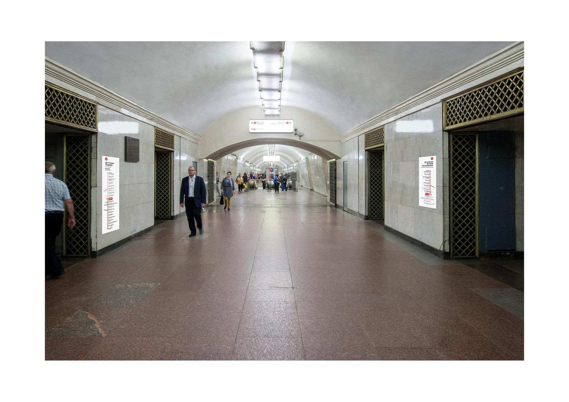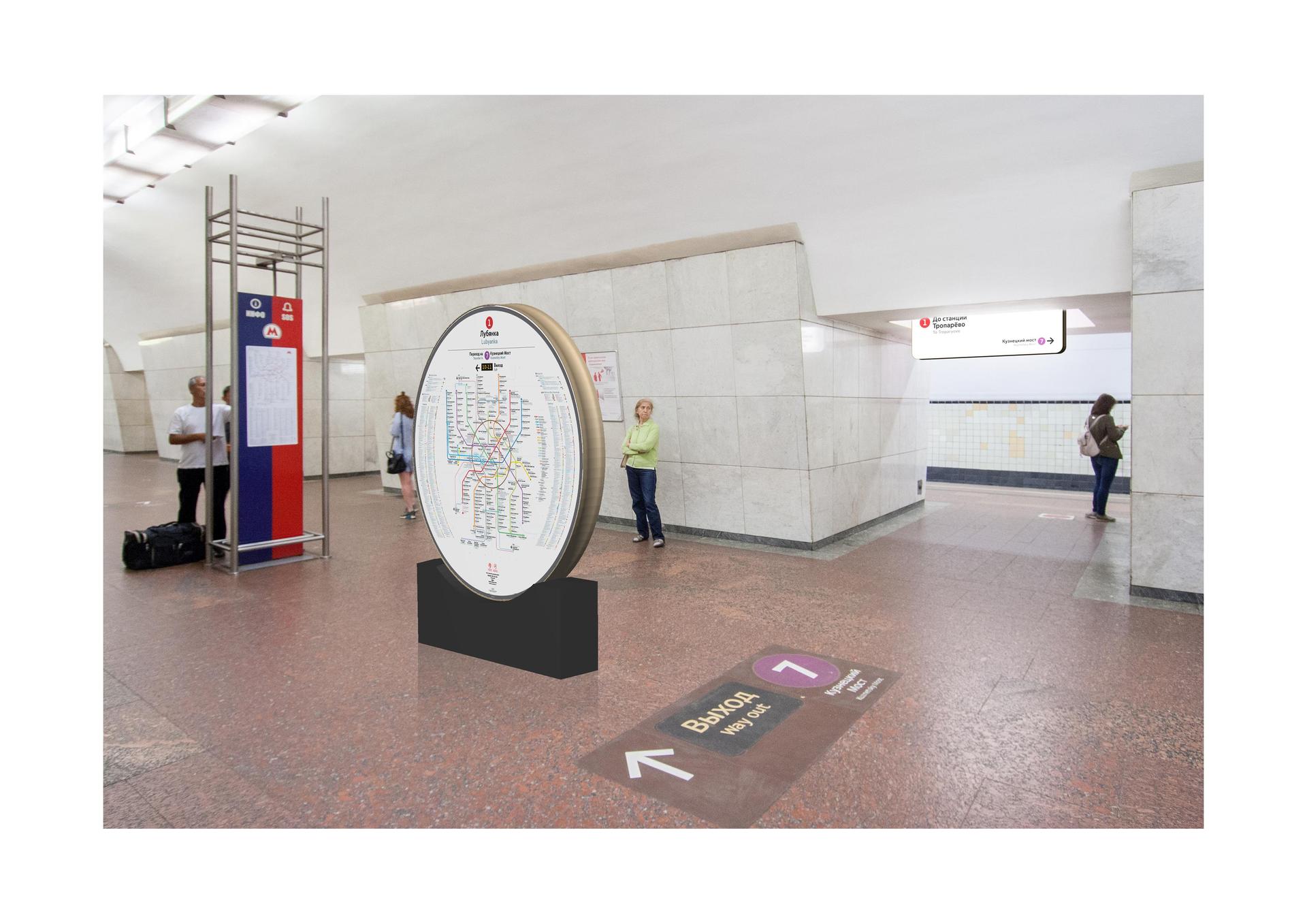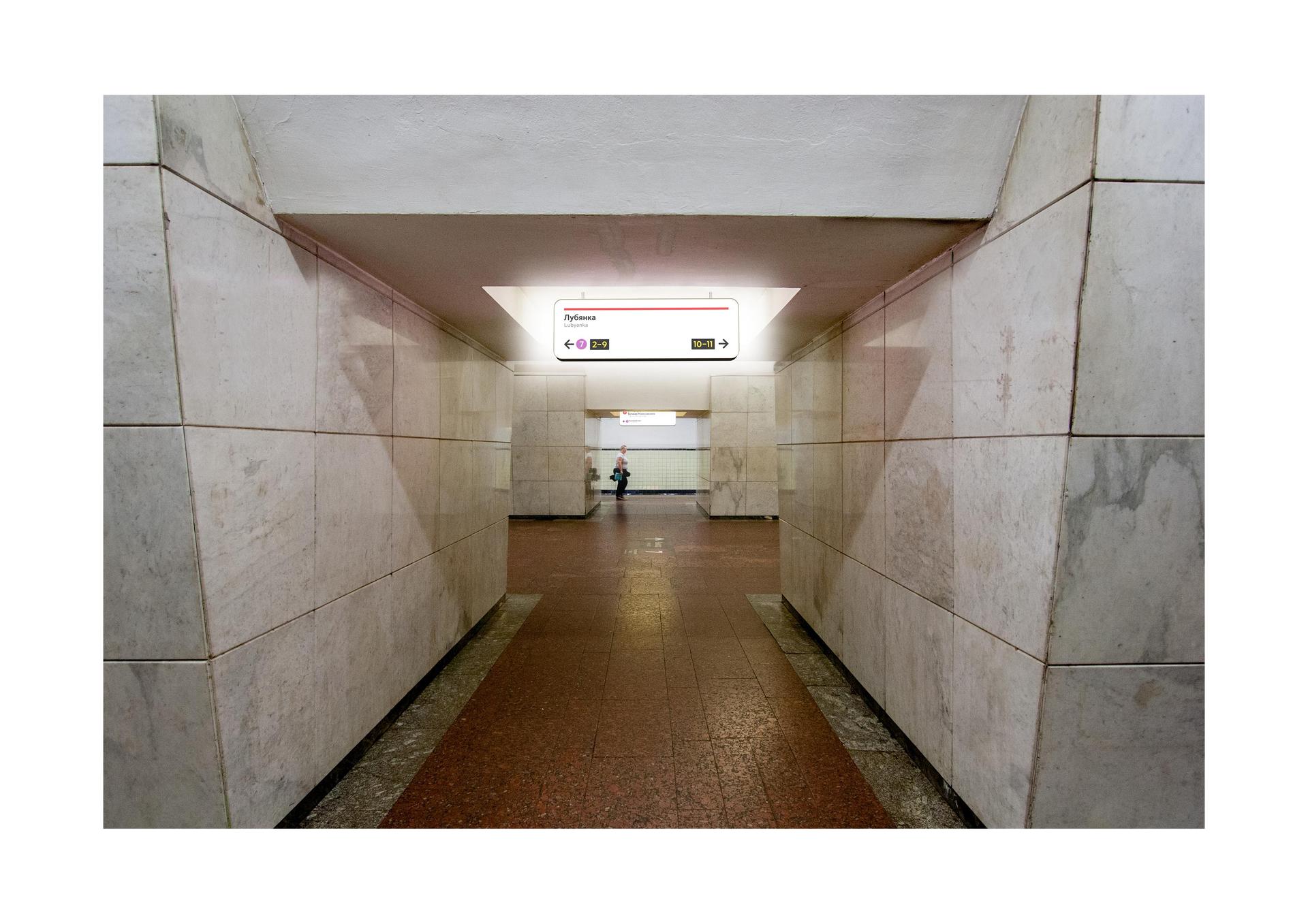 Нестандартное решение было предложено архитектором в первоначальном проекте. Он предлагал использовать цвет как средство визуальной коммуникации. Например, чтобы облегчить человеку ориентацию от входа в метро до станционного зала, Ладовский предложил метод цветовых путеводов: красных — для обозначения входа, голубых — выхода (цветовые панели выше роста человека). Но этот проект так и не был реализован.