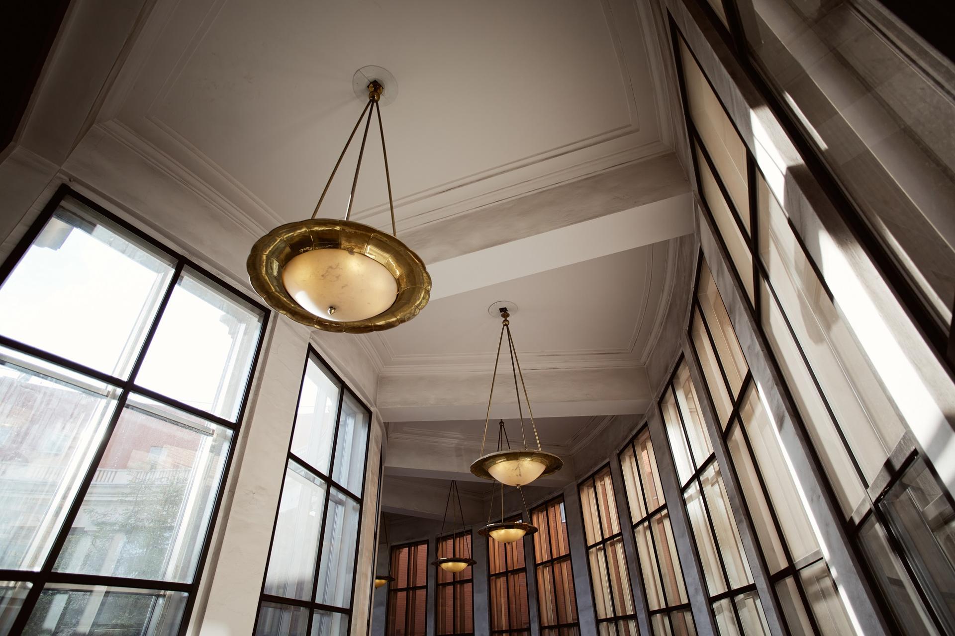 Интересная деталь: раньше освещение станции происходило только за счет световых колец-рефлекторов, которые расположены под куполами и скрыты кусками прозрачного оникса. Так достигалось равномерное освещение станционного зала. Позже были установлены дополнительные прожекторы.