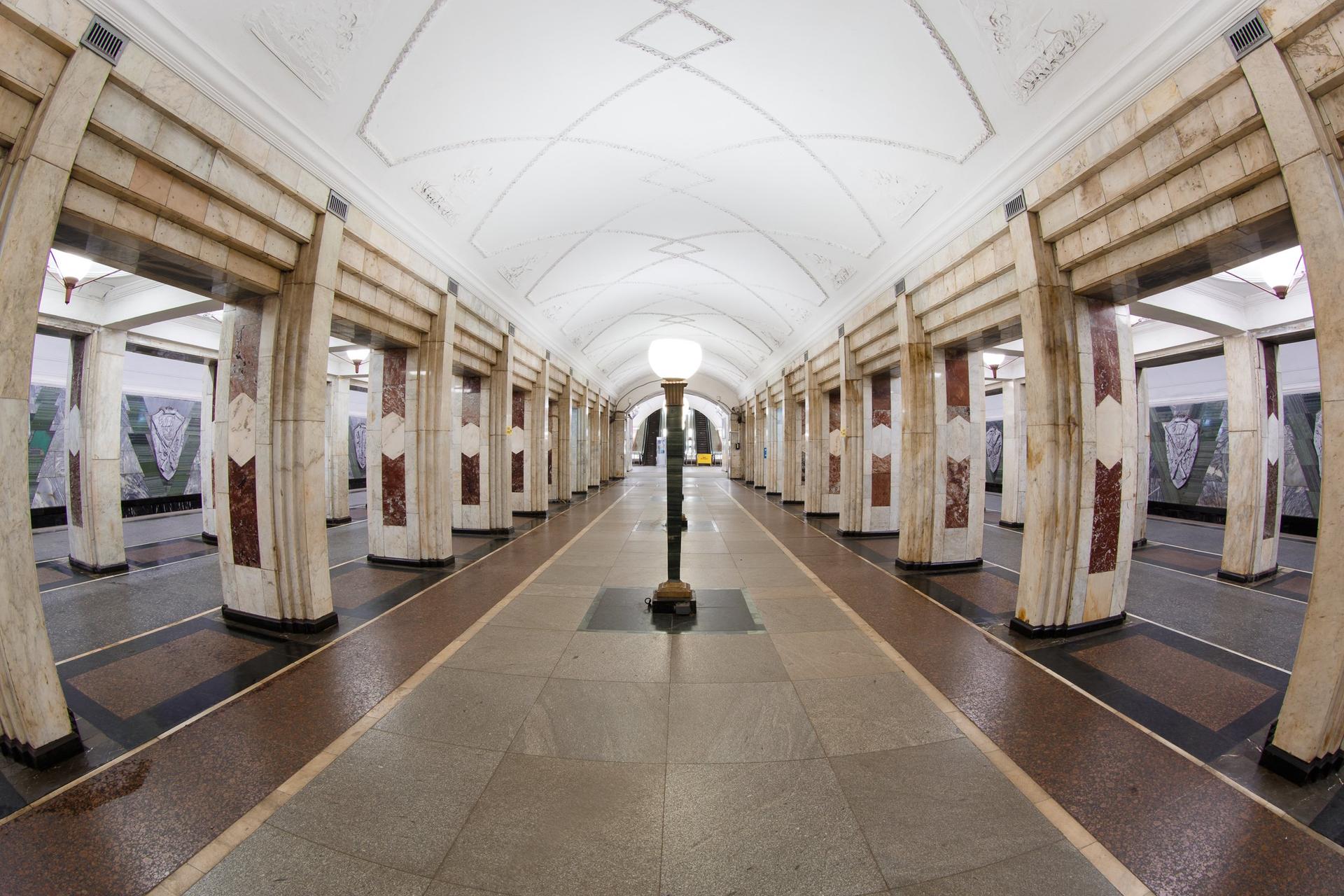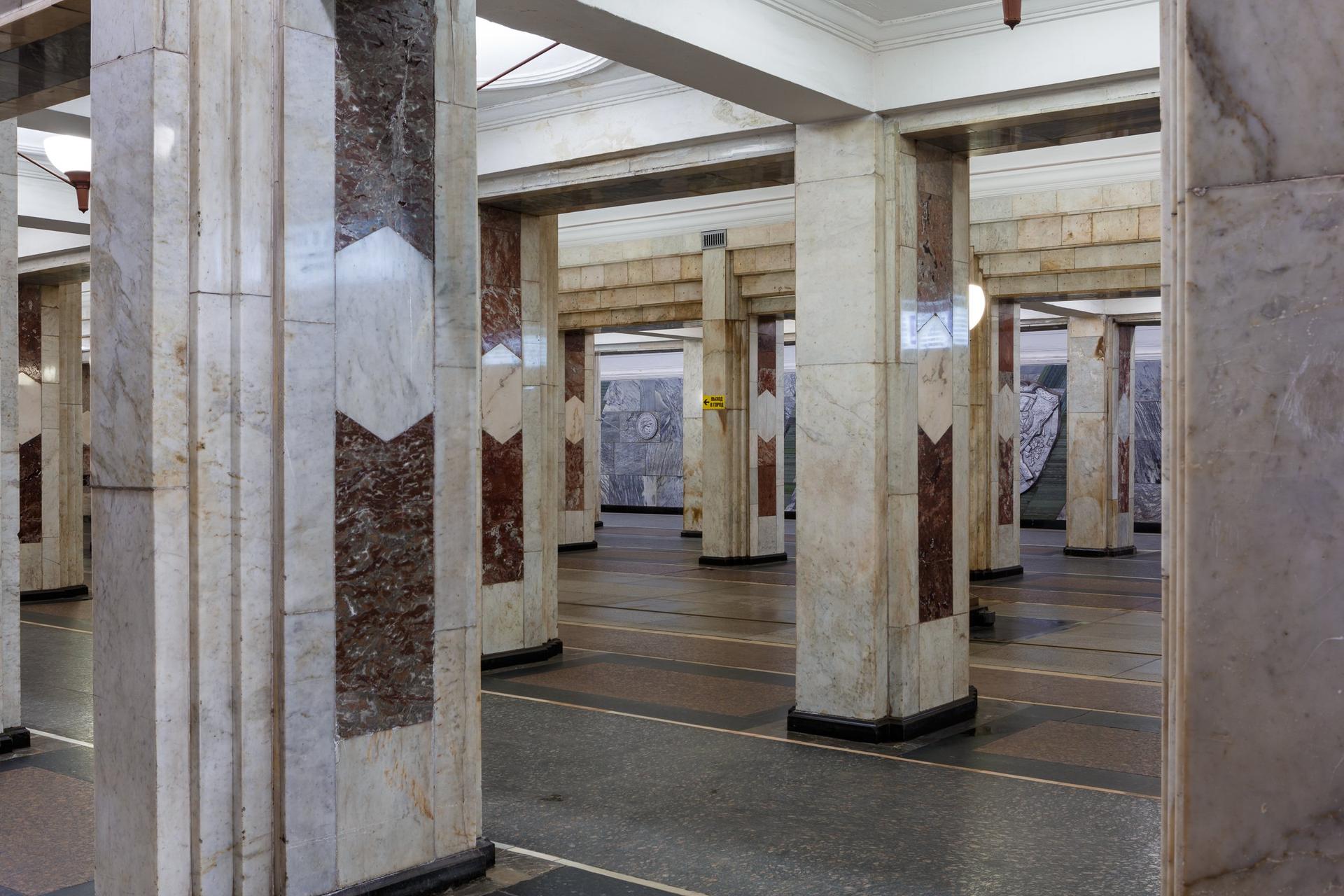 Главная тема архитектурного оформления – «Советская Армия и оружие». Над интерьером работали такие мастера как В.И. Мухина, Н.К. Вентцель и В.П. Ахметьев. Барельефы с изображением советских воинов и оружия украшают не только путевые стены станции – даже на потолке изображение танков, самолетов, кораблей и другой боевой техники.