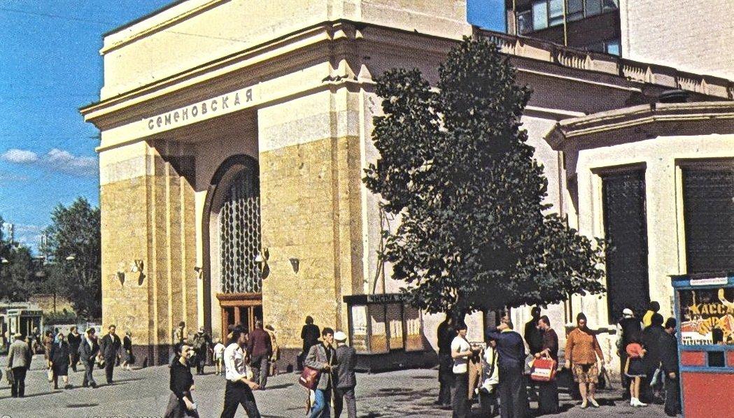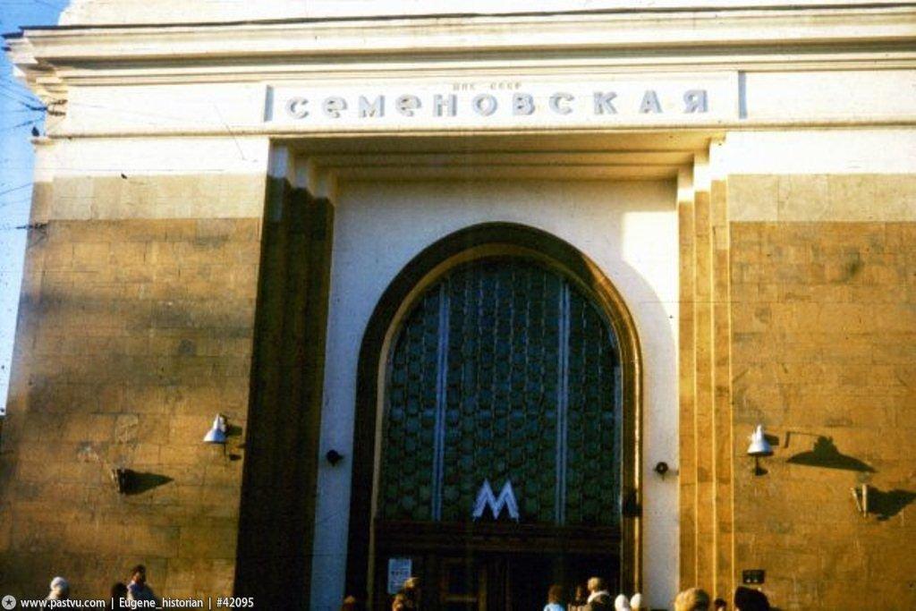 Станция «Семеновская» имеет только один наземный вестибюль. Это мощное сооружение создано в виде своеобразной «триумфальной арки». Снаружи павильон отделан благородными материалами: красным гранитом и туфом.