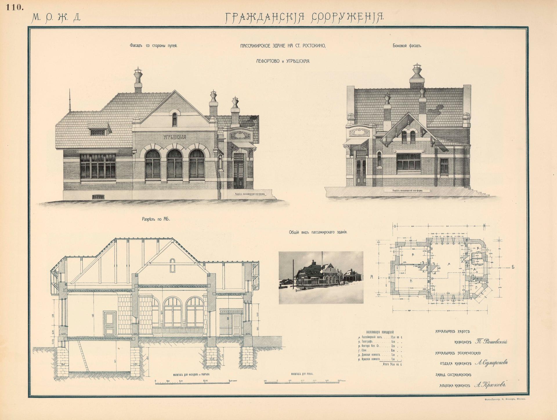 Пассажирское здание построено по типовому проекту и повторяет вокзалы Ростокино и Лефортово. Жилые дома также являются типовыми и повторяются на многих станциях. Представляет интерес дом помощника начальника участка пути, имеющий яркое архитектурное решение, которое выделяет его из остального ансамбля дороги и перекликается с домом начальника участка тяги на станции Лихоборы.