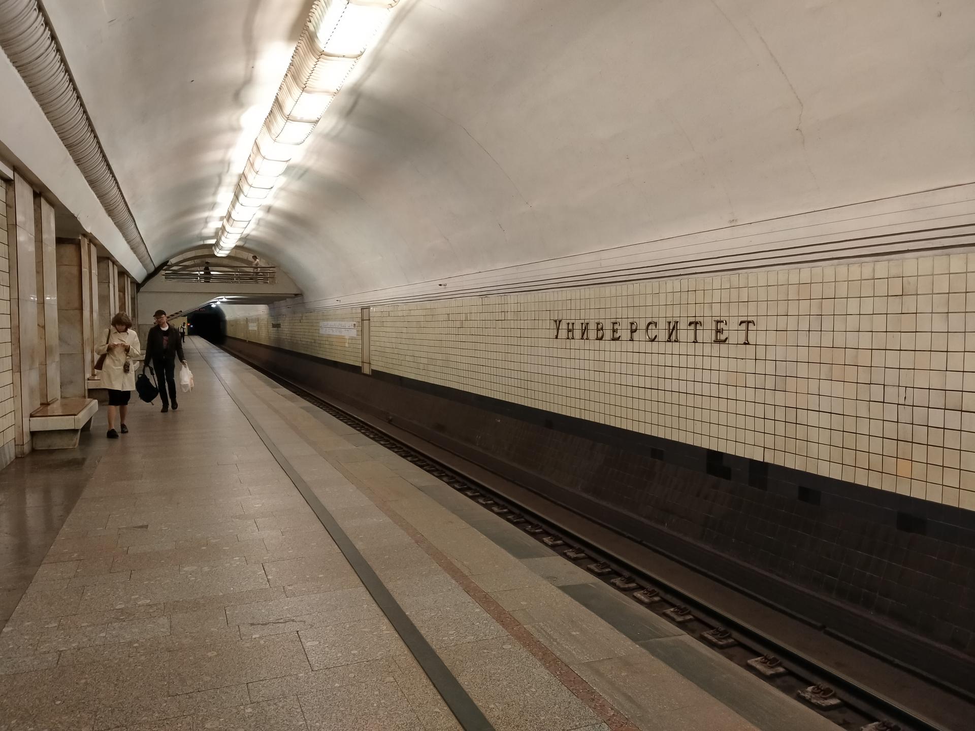 Так появились универсальные типовые проекты и станции абсолютно без декоративного оформления, единственный способ декорирования – применение различных облицовочных материалов, и без «архитектурных излишеств» – голая конструкция. К таким станциям относится и «Университет».