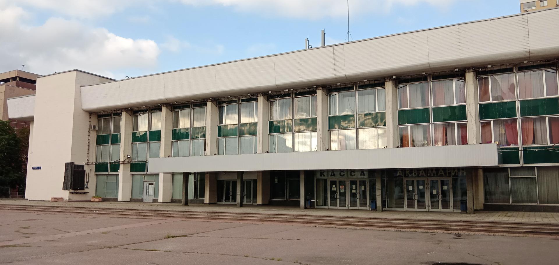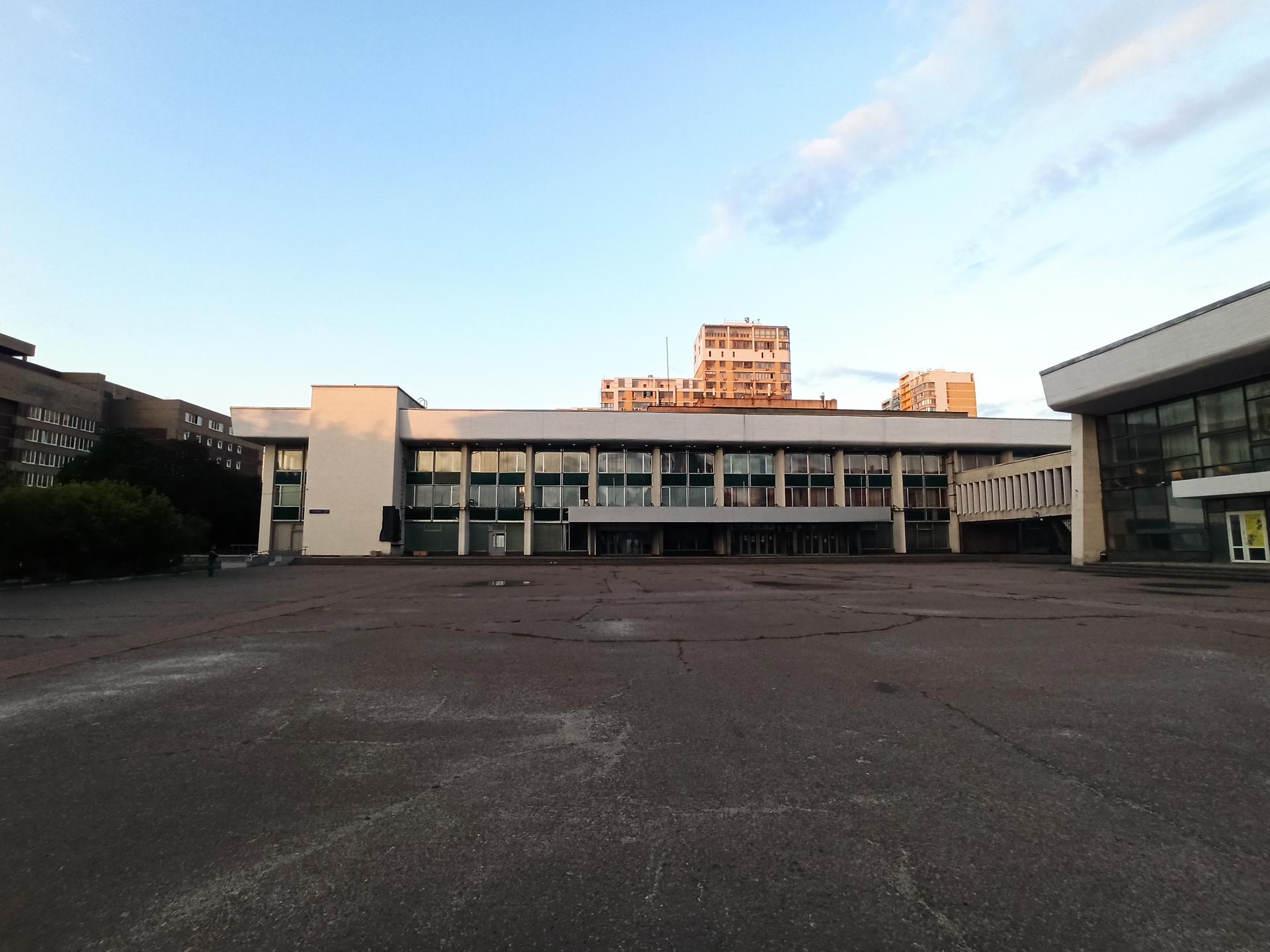 От основного объема крытый переход-мост ведет к отдельному меньшему по объему пространству кинозала. Оформление экстерьера здания типично для позднего советского модернизма — простые формы, монументальные пилоны конструкций, большие поверхности остекления, облицовка светло-серым камнем.