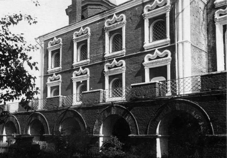 В 1673 – 1680 годах были построены церкви во имя Алексия Человека Божия, святого покровителя царя Алексея Михайловича, и рядом с нею вторая церковь во имя почитаемой Тихвинской иконы Божией Матери. Оба храма были созданы крупными и высокими, на едином подклетном этаже с общим гульбищем. Есть предположение, что Тихвинская церковь соединялась переходом непосредственно с царским дворцом – сохранившийся портал в северной стене трапезной был входом на хоры по наружной лестнице с гульбища, либо по переходу из второй церкви. Высокий статус Тихвинской церкви повлиял и на внутреннее устройство: в юго-восточном углу трапезной была устроена молельня для царя, а в юго-западной части – для царицы, причём оба помещения имели особые входы с гульбища, а с храмом соединялись лишь при помощи небольших окон. Все они сохранились до наших дней; кроме того, в царской молельне находится уникальная круглая печь XVII века, украшенная цветными поливными изразцами.