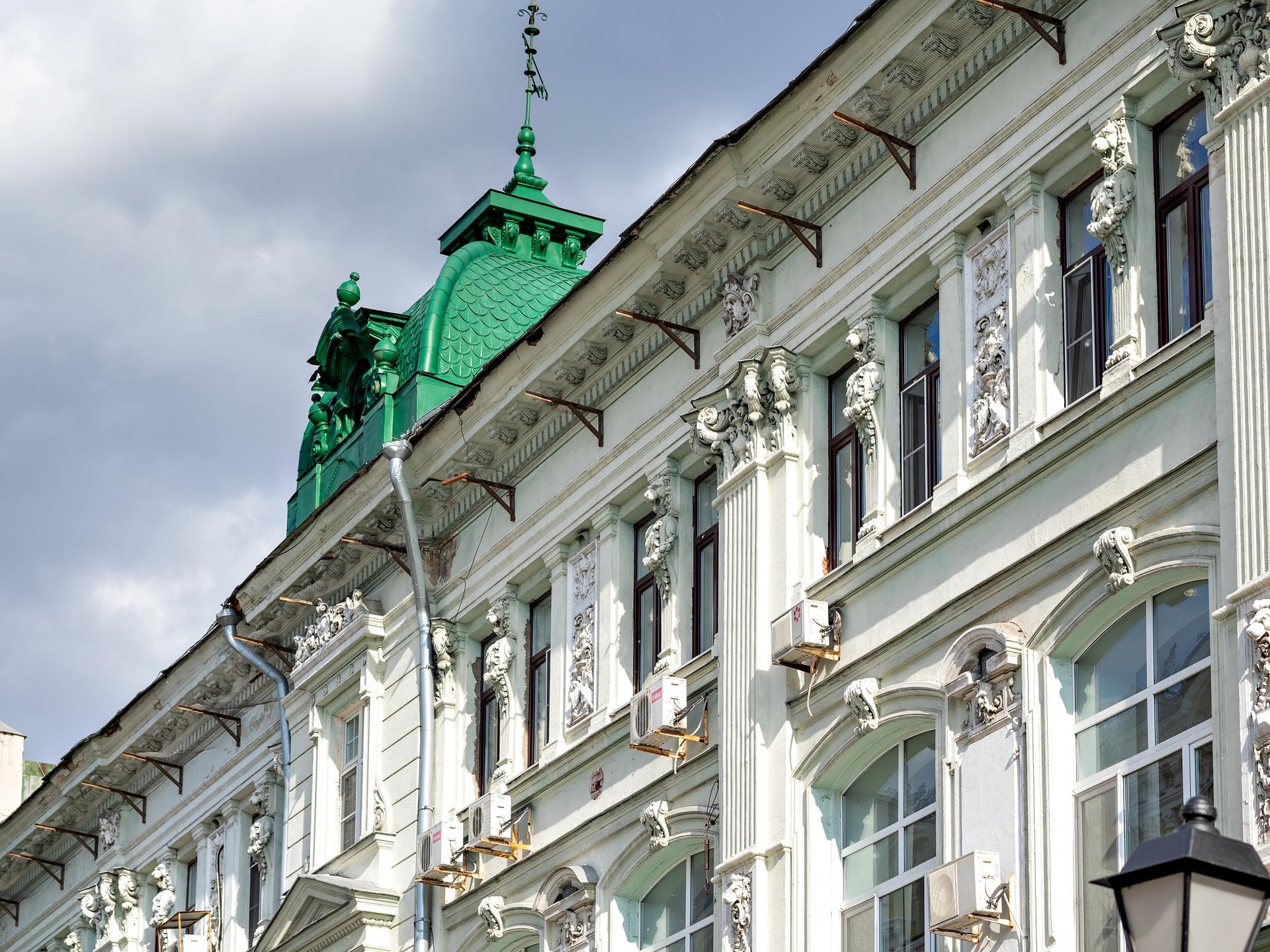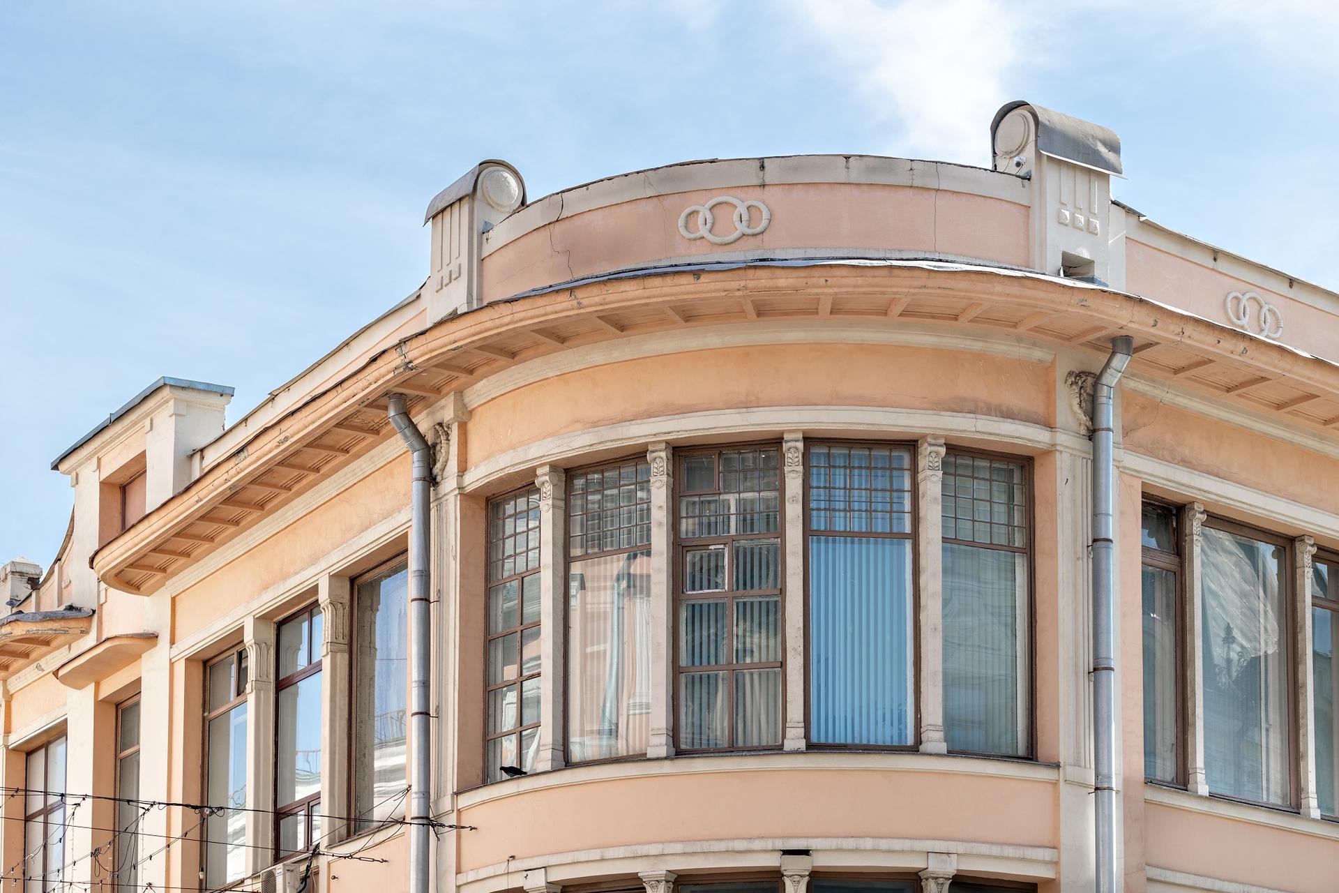 Угловой с Рождественкой объём здания был полностью перестроен в 1907 году по проекту архитектора Адольфа Эрнестовича Эрихсона в стиле модерн. В результате, две части дома выглядят, как совершенно разные постройки, которые легко принять за два отдельных здания.