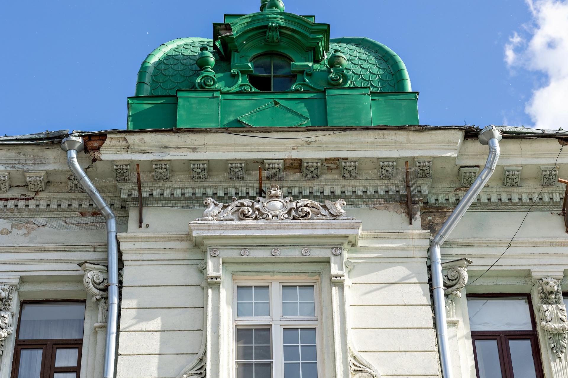 А в 1893 году известный московский архитектор Борис Викторович Фрейденберг уже для новых хозяев – банкиров братьев Джамгаровых – строит ныне существующее трёхэтажное здание в эклектическом стиле, украшенное «барочным» металлическим куполом с флюгером на мачте. Окна дома оформлены львиными масками со спускающимися листьями аканта, простенки между окнами заполнены изящными лепными виньетками.