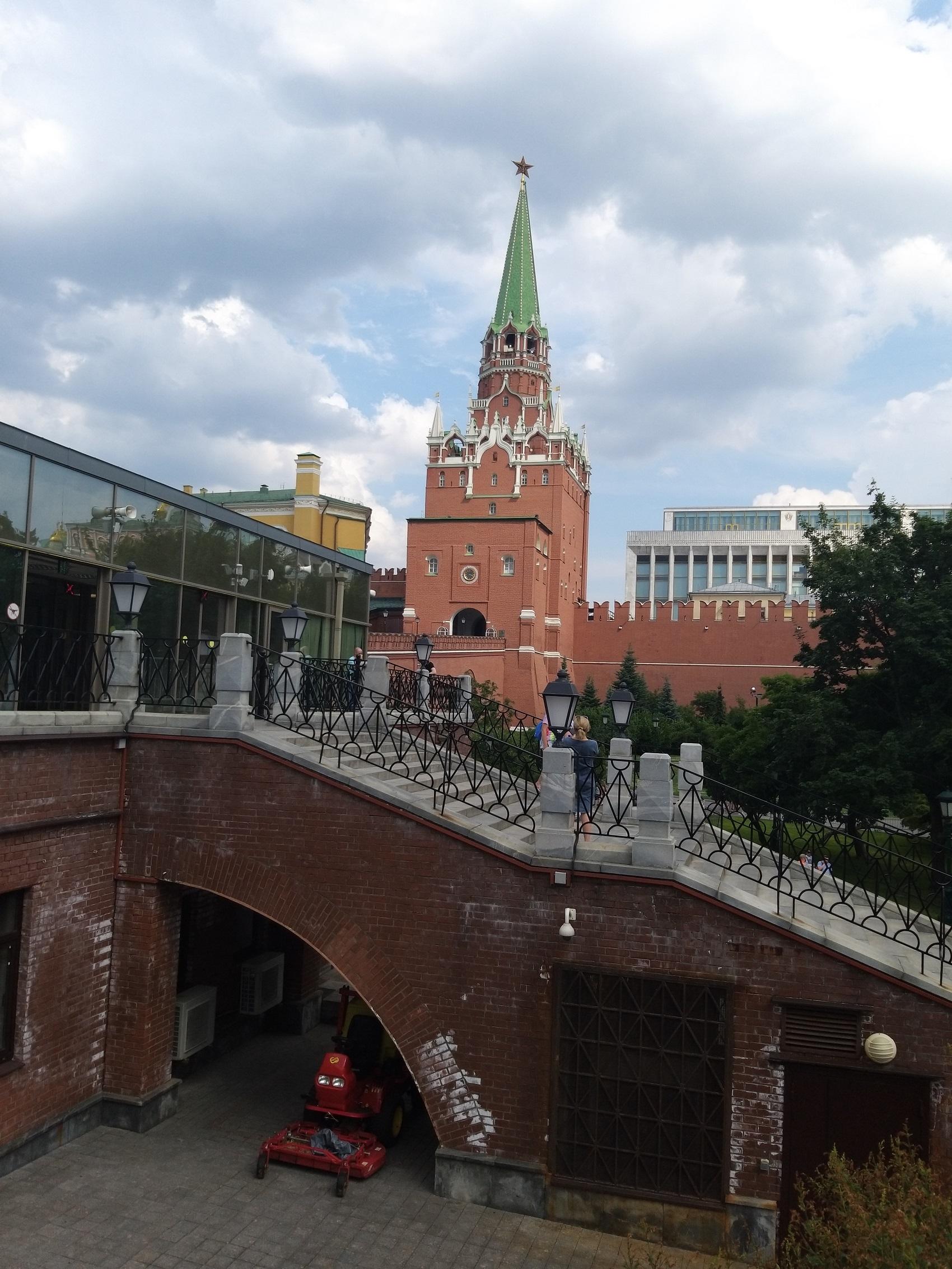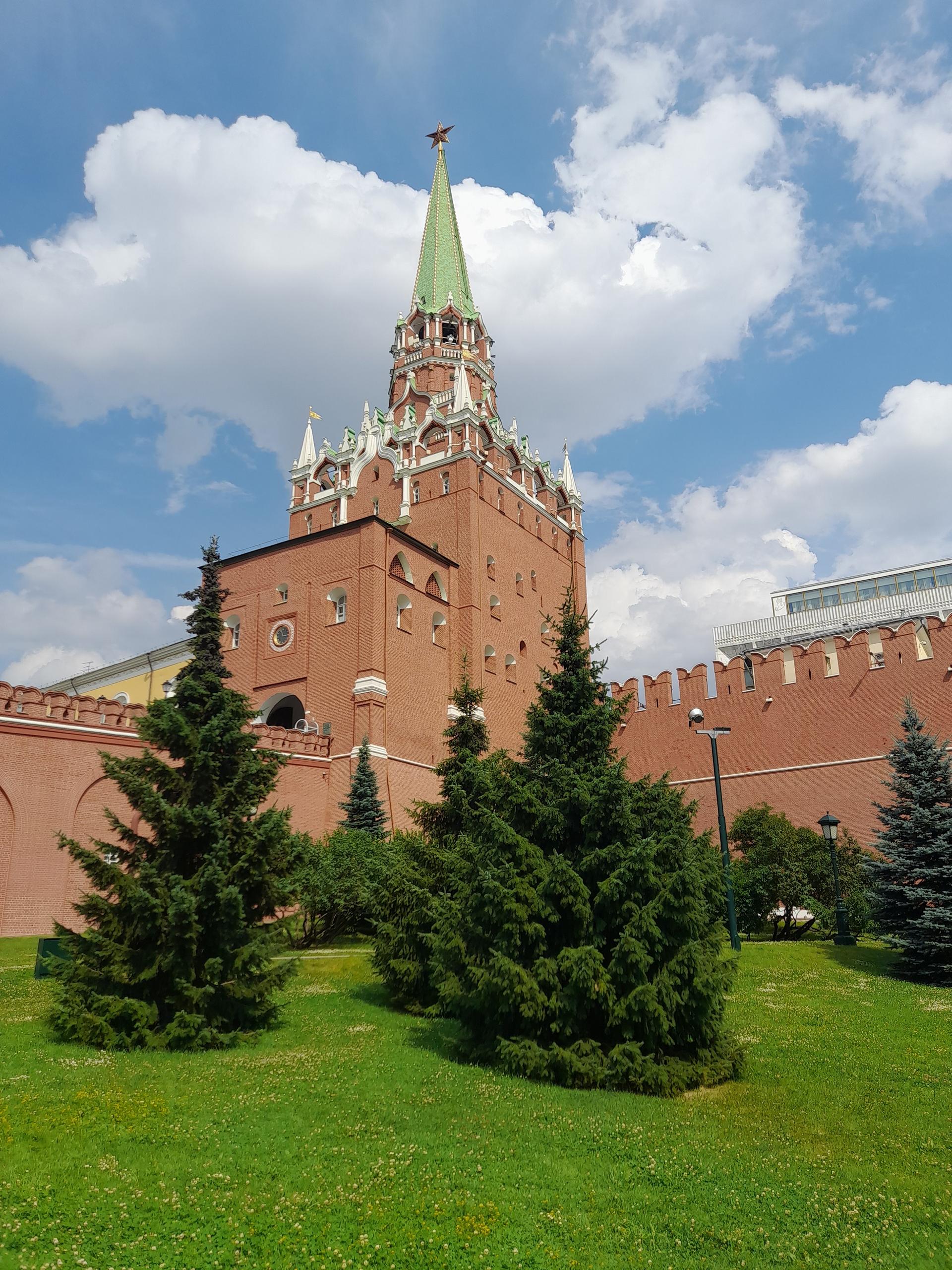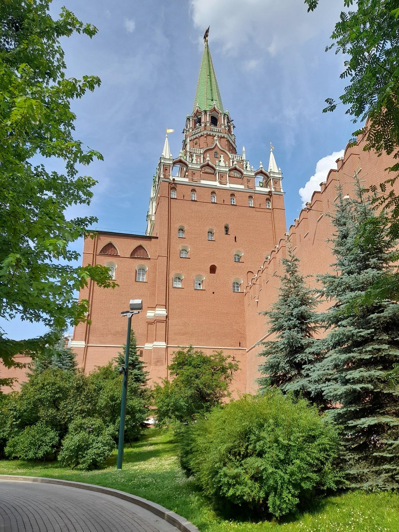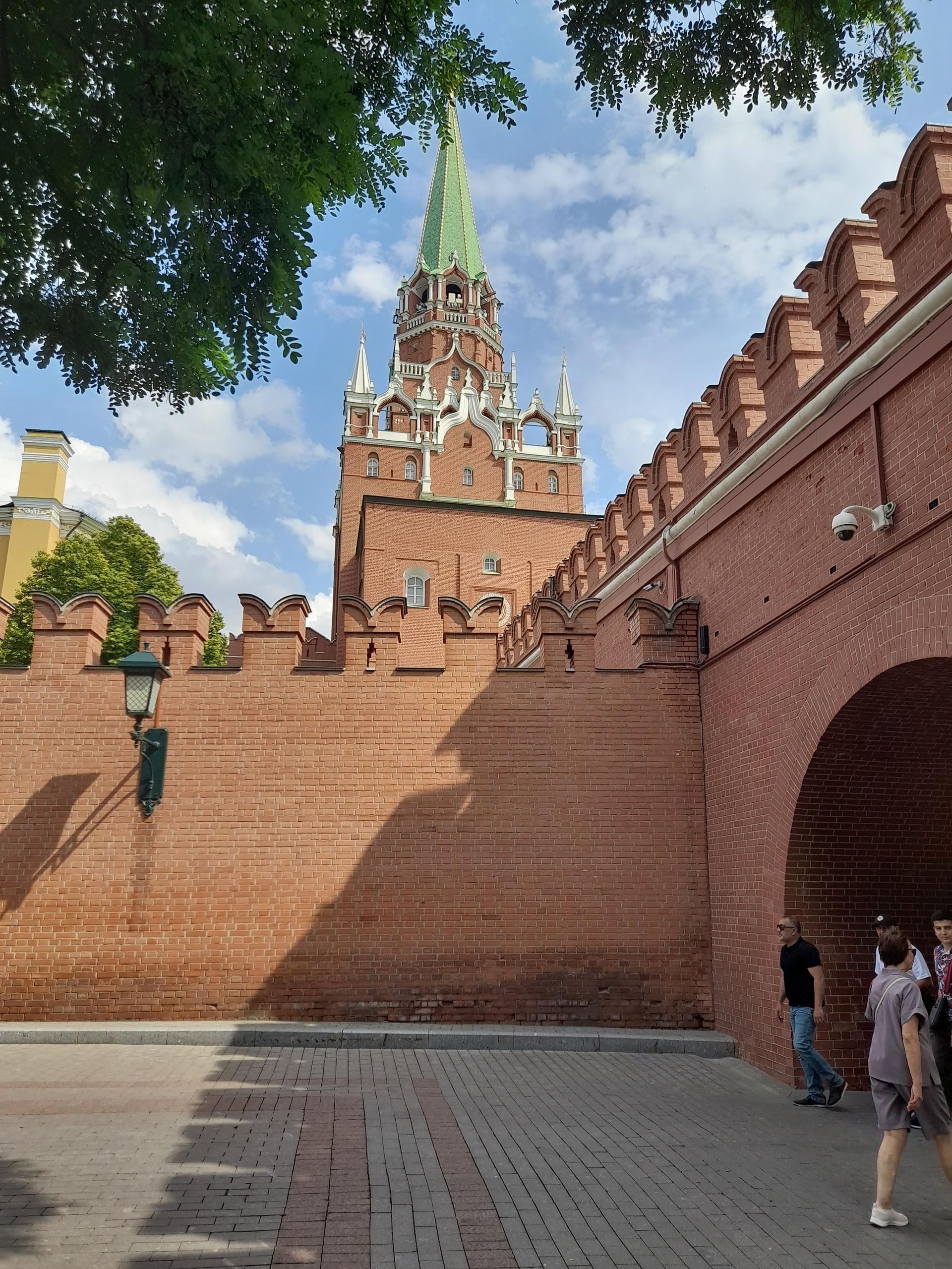 Троицкая башня - проездная, с отводной стрельницей, - главная на западной стороне Кремля. Ее строительство в 1495-1499 годах архитектором Алевизом Фрязиным завершило возведение укреплений со стороны реки Неглинной, позднее Александровского сада. В 1516 году от Троицкой башни через реку Неглинную был построен каменный Троицкий мост, а за ним сооружена башня Кутафья. В XVI-XVII веках Троицкие ворота считались вторыми по значению после Спасских - они служили для проезда в Кремль ко дворам патриарха, цариц и царевен.