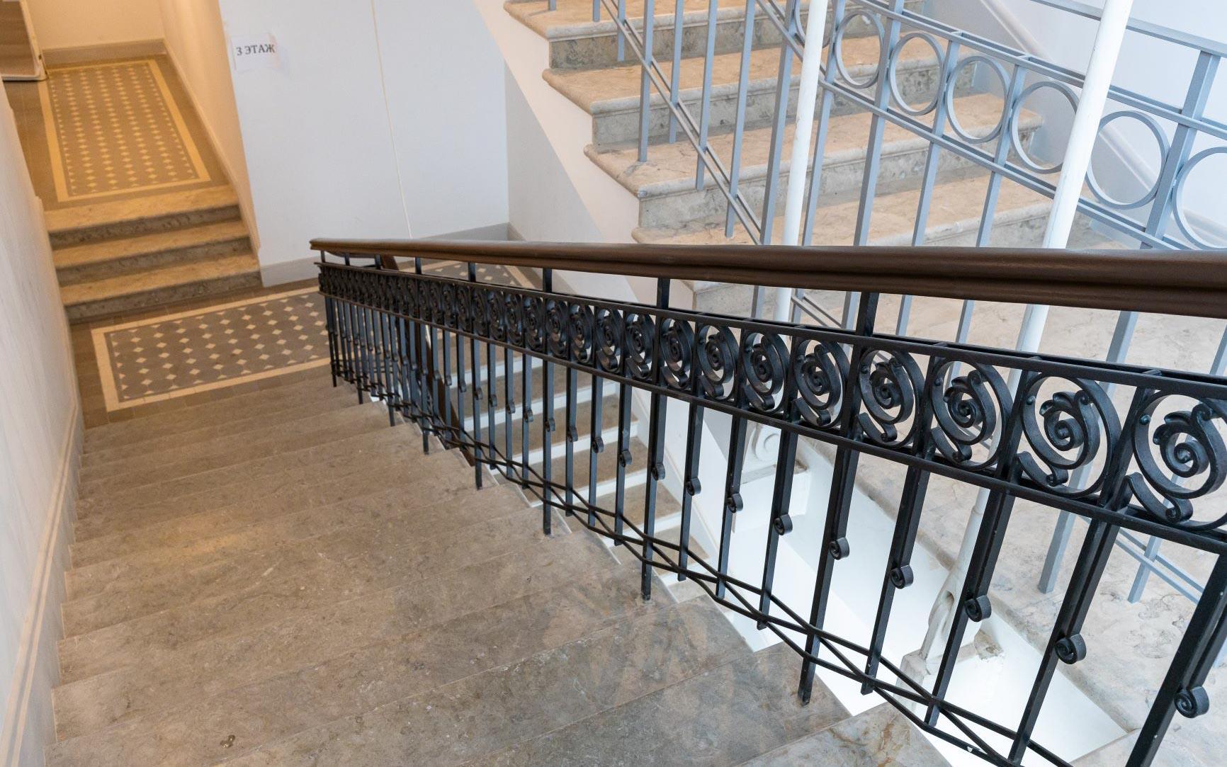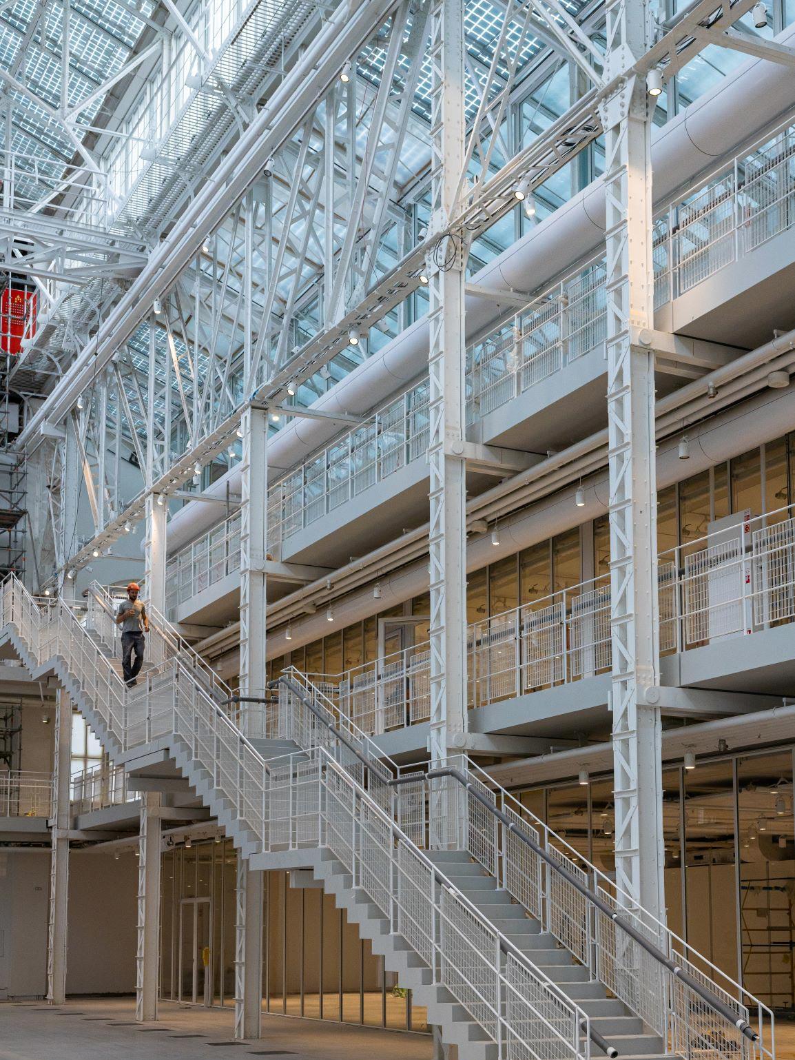 Интерьеры здания также подверглись тщательной реставрации. Была восстановлена историческая лестница с кованым ограждением и метлахской плиткой, сохранены и отреставрированы другие уникальные элементы промышленной архитектуры начала XX века.