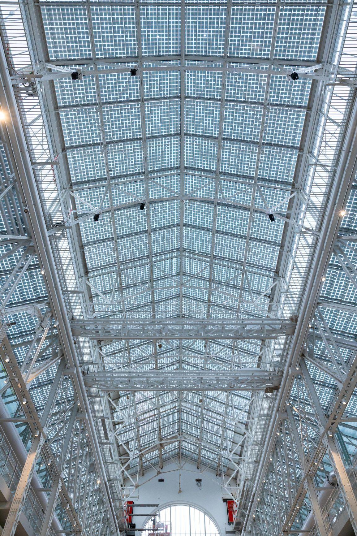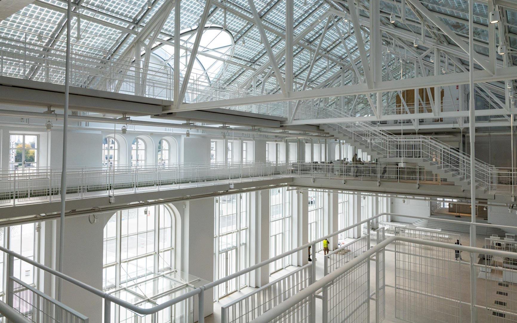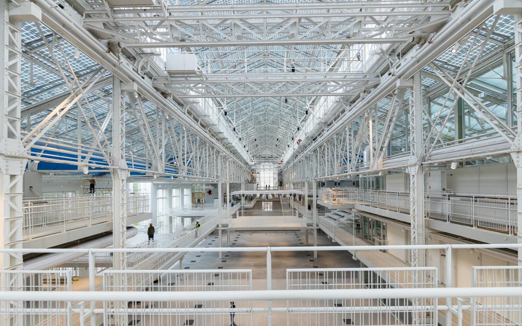 В ходе реставрации были укреплены наружные стены, разобраны заложенные оконные проёмы, восстановлена историческая окраска фасадов. Главным украшением здания вновь стала воссозданная башня с часами. Особое внимание уделили световому решению: кровлю над основным зданием выполнили из светопрозрачного материала со встроенными солнечными батареями, обеспечивающими до 10 процентов необходимой энергии.