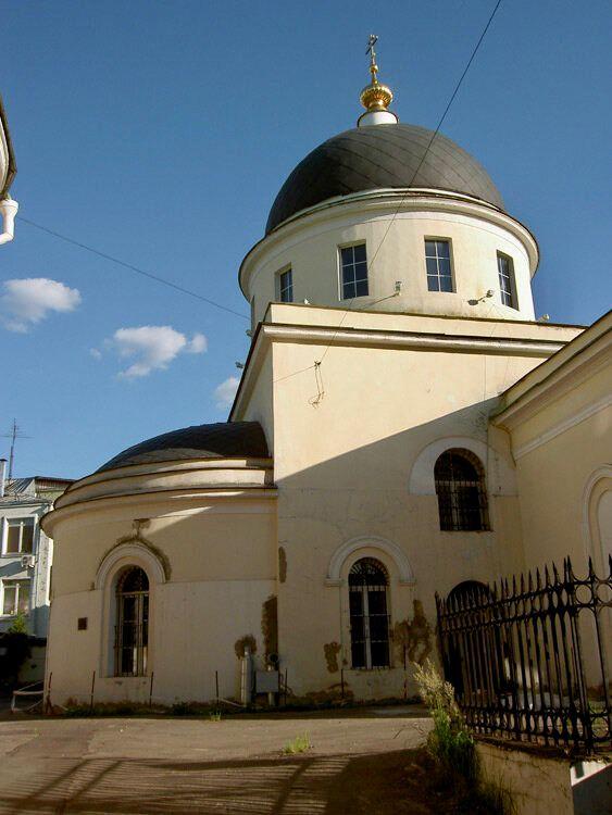 Изначально каменный храм XVII века имел традиционный для своей эпохи вид: пятиглавая церковь с горкой кокошников и фасадами, декорированными фигурным кирпичом. Шатровая колокольня с западной стороны была заменена в середине XVIII века трёхъярусной барочной. В 1831–1833 году церковь вместо пятиглавия получила широкий купол на барабане, прорезанном большими окнами, три алтарные апсиды были заменены одной широкой, кирпичный декор с фасадов убран – в целом здание получило сдержанный ампирный облик, в котором от XVII века осталась только основа. Заказчиком работ по перестройке церкви выступил купец Иван Матвеевич Ярцев, бывший в то время московским городским головой. А в 1841 – 1844 году на средства купчихи Татьяны Ивановны Тумаковой обновлены в стиле ампир трапезная и приделы.
