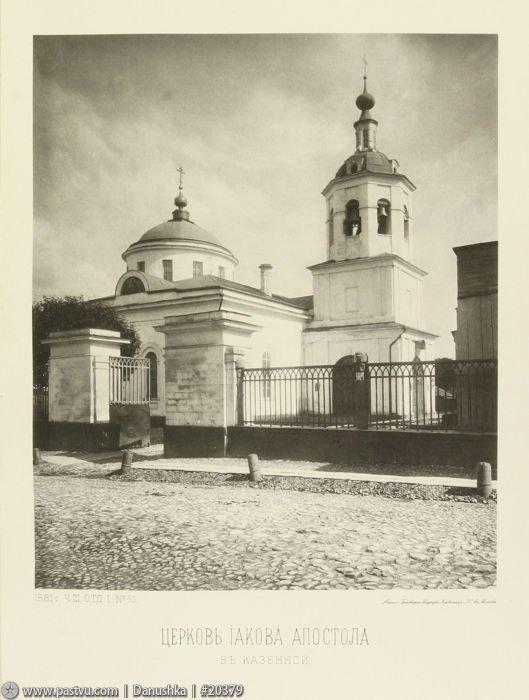 Деревянный храм на этом месте впервые упоминается в 1625 году, но по косвенным свидетельствам известно, что он существовал и ранее. В это время здесь располагалась Государева Казённая слобода, ведавшая хранением царской казны и другого имущества. В 1676 году на средства купца Даниила Пивоварова построена каменная церковь, главный престол которой был освящён во имя Казанской иконы Божией Матери, а в трапезной устроены два придела, Никольский и Яковлевский – по последнему стал именоваться и весь храм. Окончательно облик церкви сформировался во 2-й четверти XIX века, когда она была серьёзно перестроена.