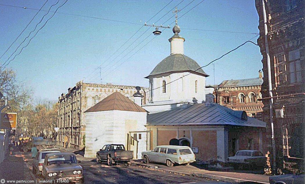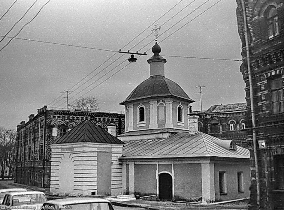 В самом деле, в 1752 году одно из владений рядом с храмом принадлежало коллежскому асессору Алексею Крапивину. В прошлом были и другие названия церкви: «в Старых Серебряниках», «у Трубы», то есть близ Трубной площади, «в Сторожах».