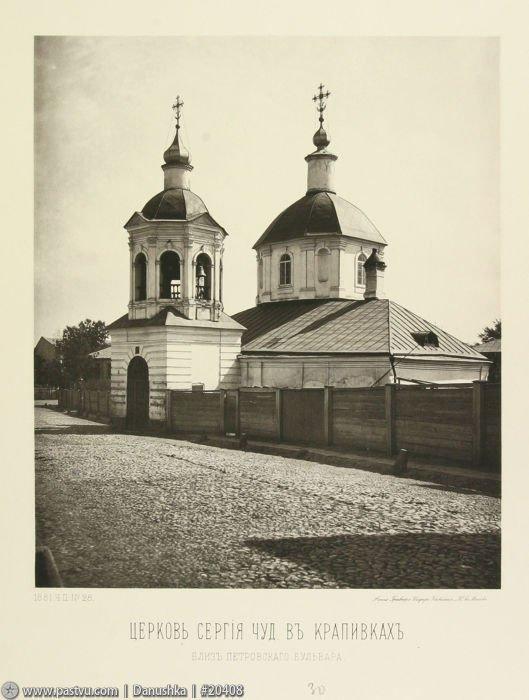 В дореволюционное время церковь в Крапивниках была единственным храмом центра столицы, главный престол в котором был освящен в честь преподобного Сергия Радонежского.