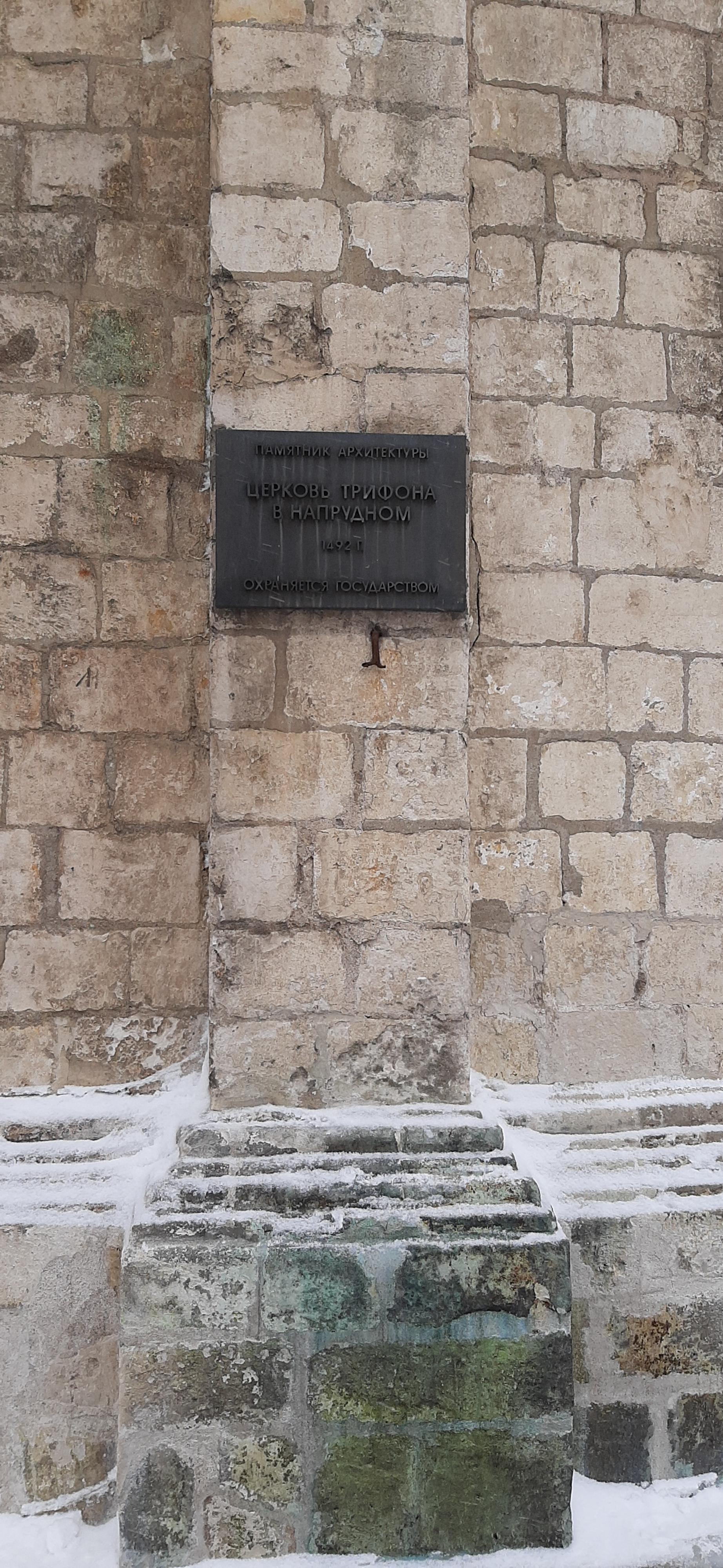 Ещё в XIV веке упоминается дворцовое село Напрудное, располагавшееся на этом месте – вокруг прудов и одноимённой реки, бывшей притоком Неглинной. Со временем здесь появился Государев Воловий двор, кроме того Напрудное и его окрестности были популярным местом для соколиной охоты – именно с ней связана легенда о создании церкви во имя святого Трифона. Согласно преданию, князь Патрикеев во время государевой охоты в Напрудном упустил сокола и, опасаясь монаршего гнева (одни источники называют Ивана III, другие – Ивана IV Грозного), слёзно молился святому Трифону о помощи. На месте, где он вскоре нашёл сокола по указанию святого, князь Патрикеев в благодарность поставил Трифоновскую церковь. Впоследствии, на рубеже XVI–XVII веков, в интерьере храма была выполнена фреска, изображающая святого Трифона в виде всадника с соколом на правой руке.