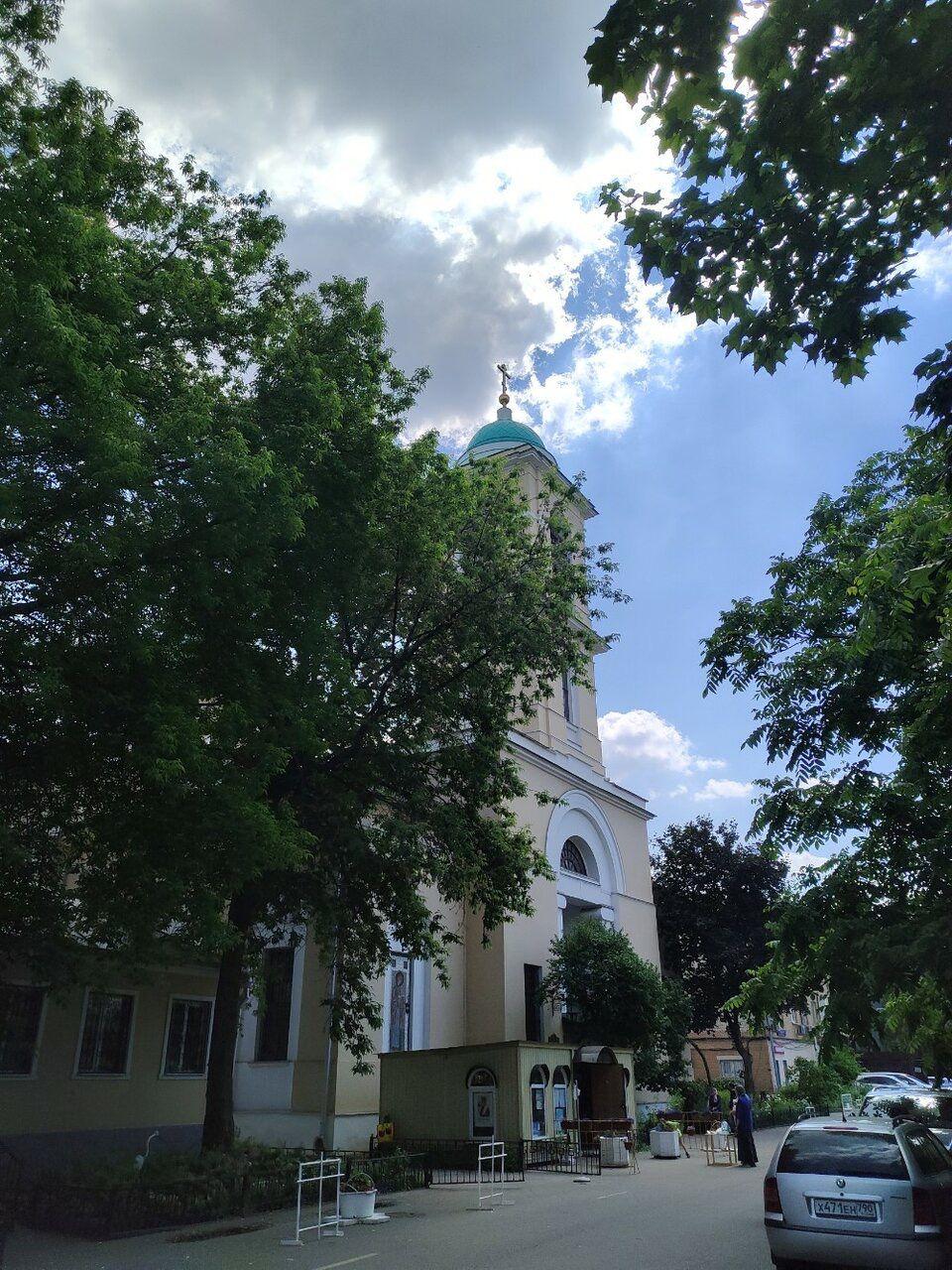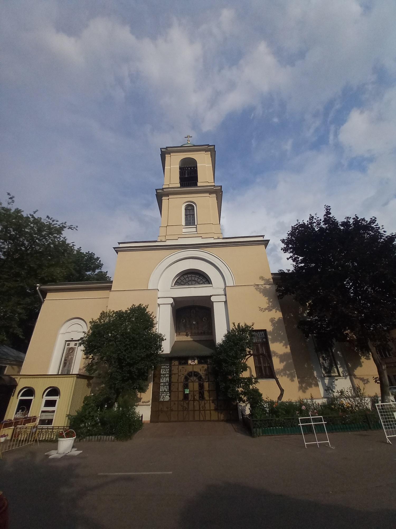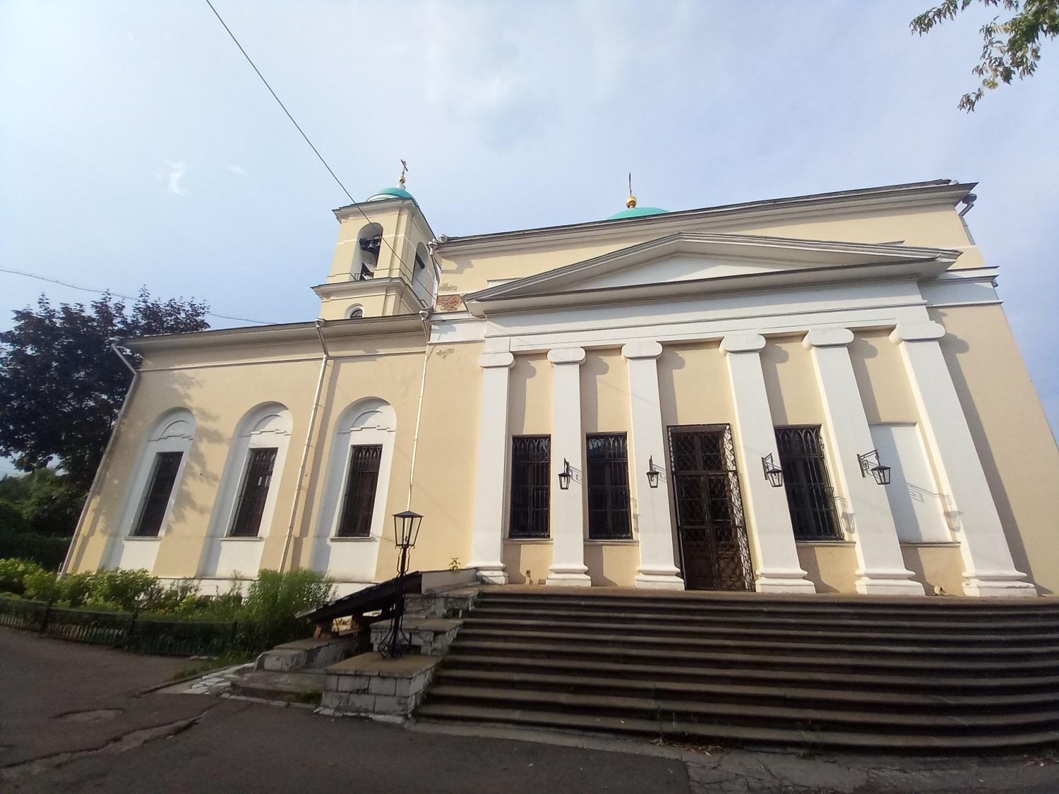 Церковь Воскресения Словущего построена архитектором Ф.М. Шестаковым и выдержана в стилистике позднего ампира: массивный куб основного храма, украшенный с севера и с юга шестиколонными ионическими портиками с фронтонами, увенчанный куполом со световой ротондой, продолжается на запад крупной трапезной и трёхъярусной колокольней над главным входом. Помимо трёх придельных храмов из старой церкви, в трапезной был добавлен четвёртый – во имя Иоанна Златоуста. С юго-запада от храма сохранился небольшой одноэтажный дом причта.